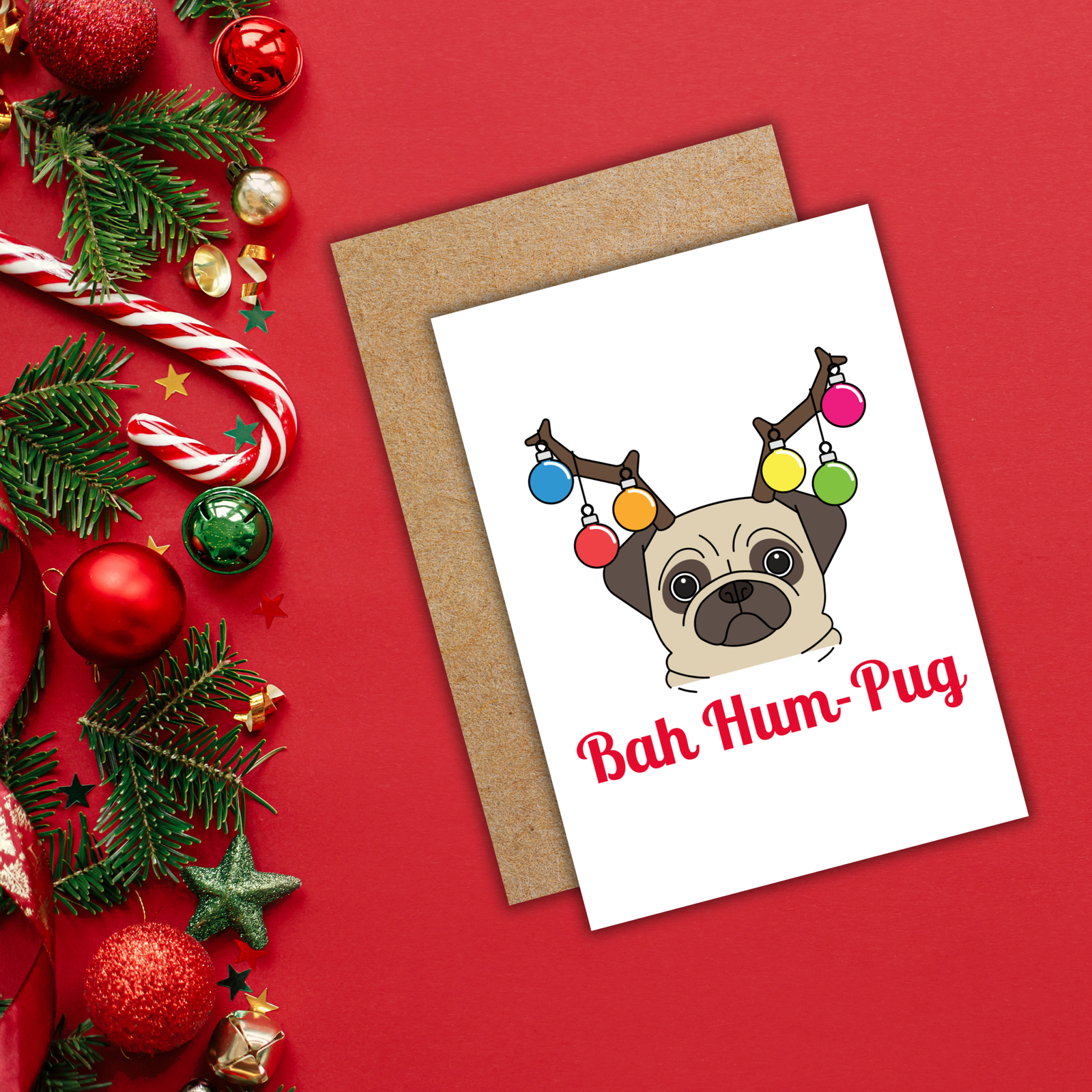 For those who aren’t exactly filled with festive cheer, this “Bah Hum-Pug” card is the perfect antidote to all the holiday hype. Featuring a decidedly grumpy pug, it’s ideal for anyone who prefers a side of sarcasm with their Christmas cookies.