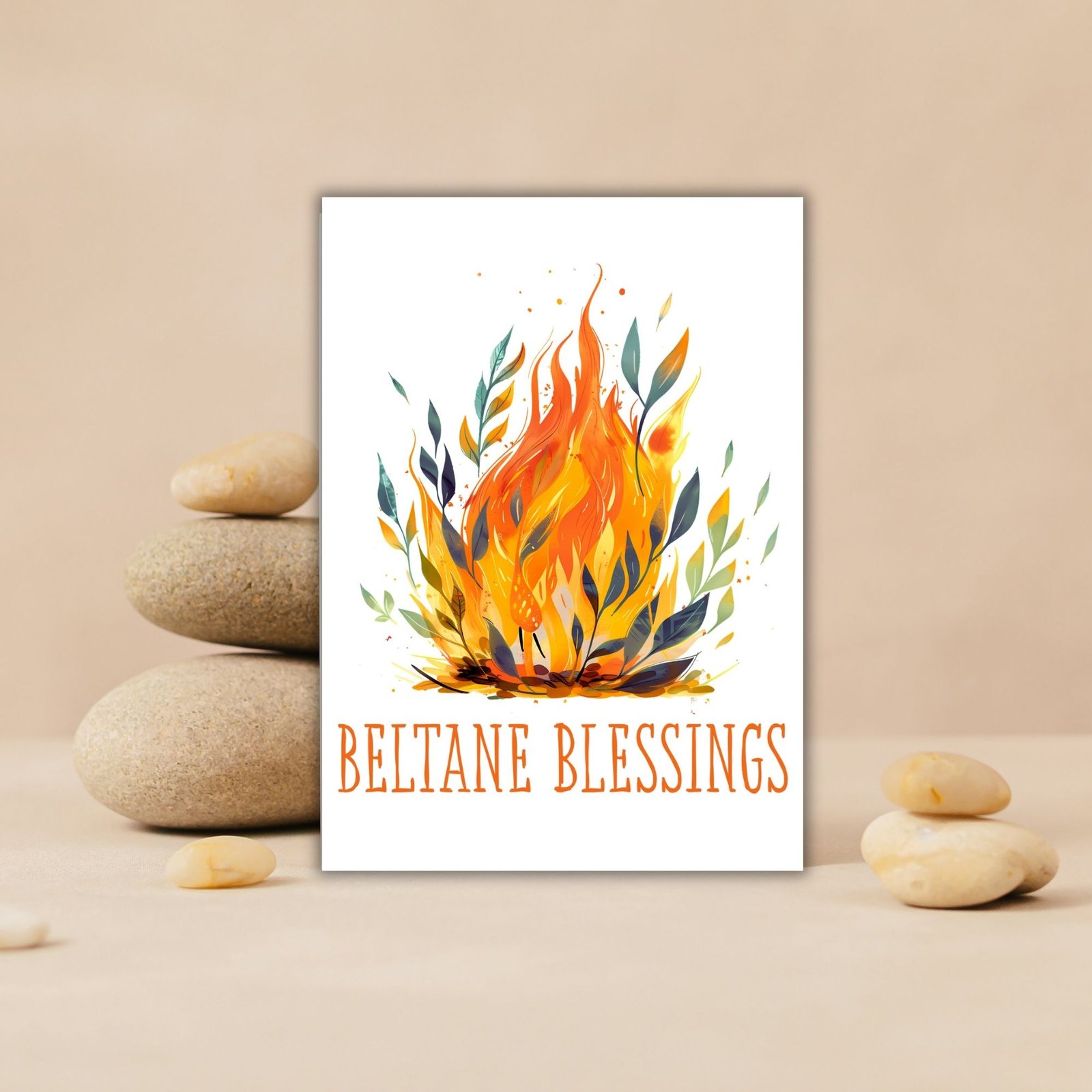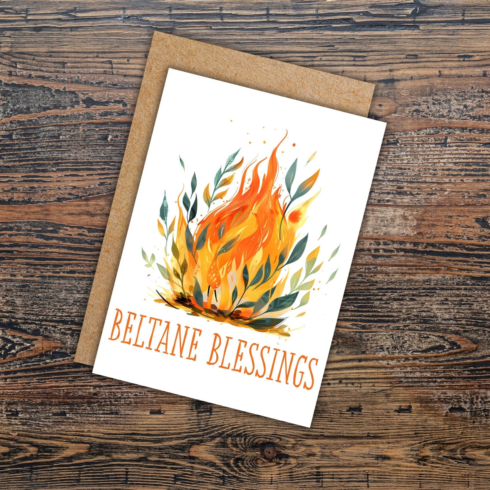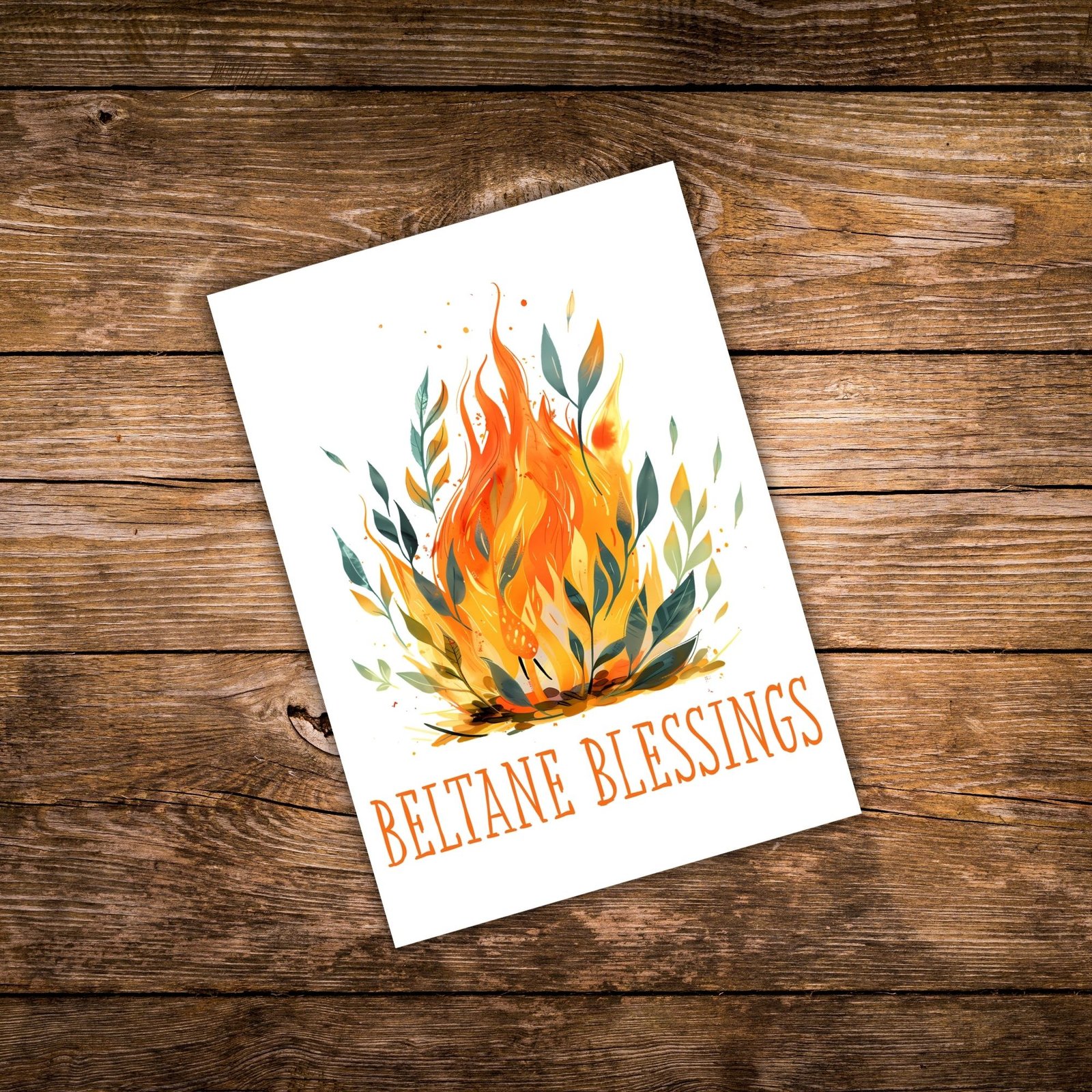 Beltane Blessings Card – Fire Festival Bonfire Design