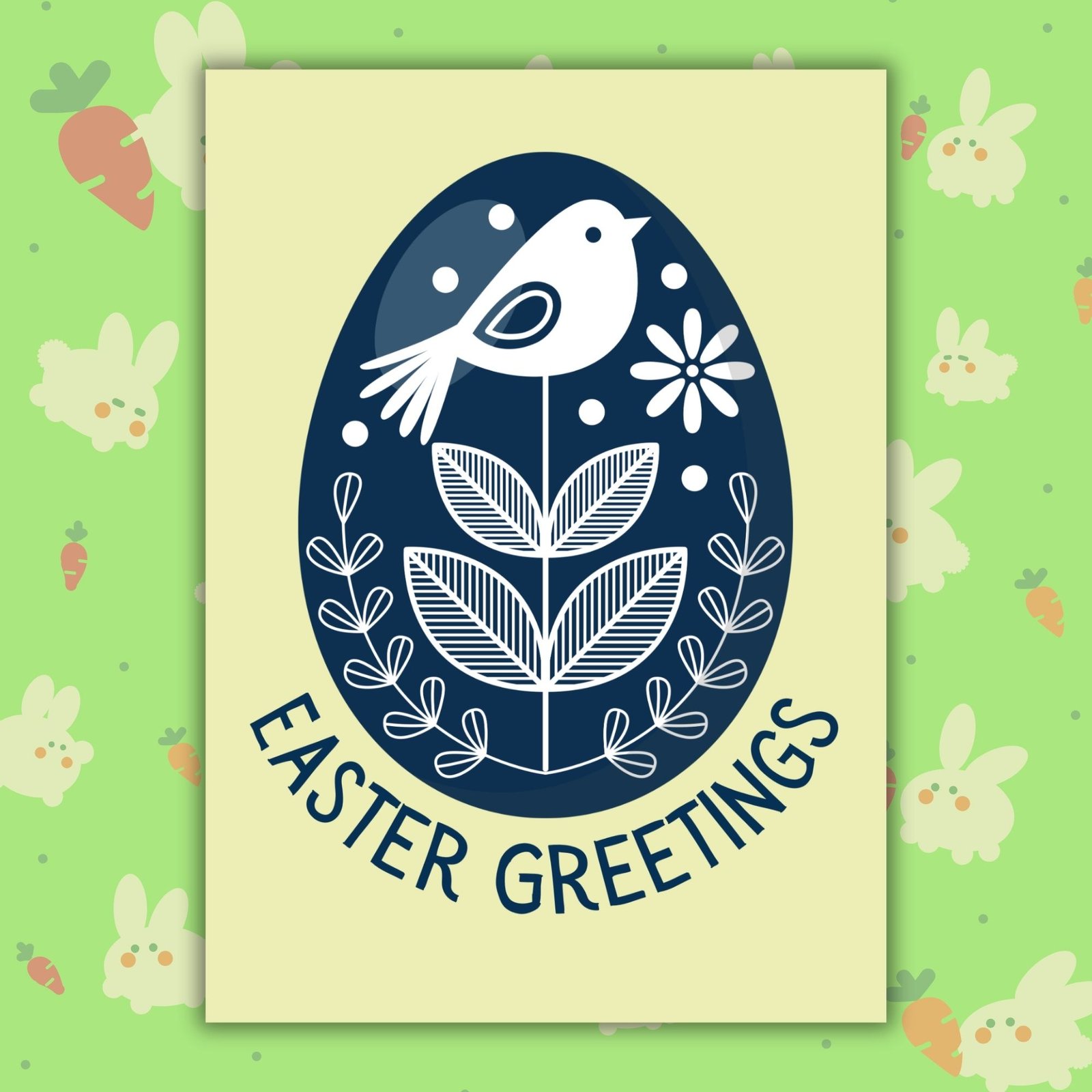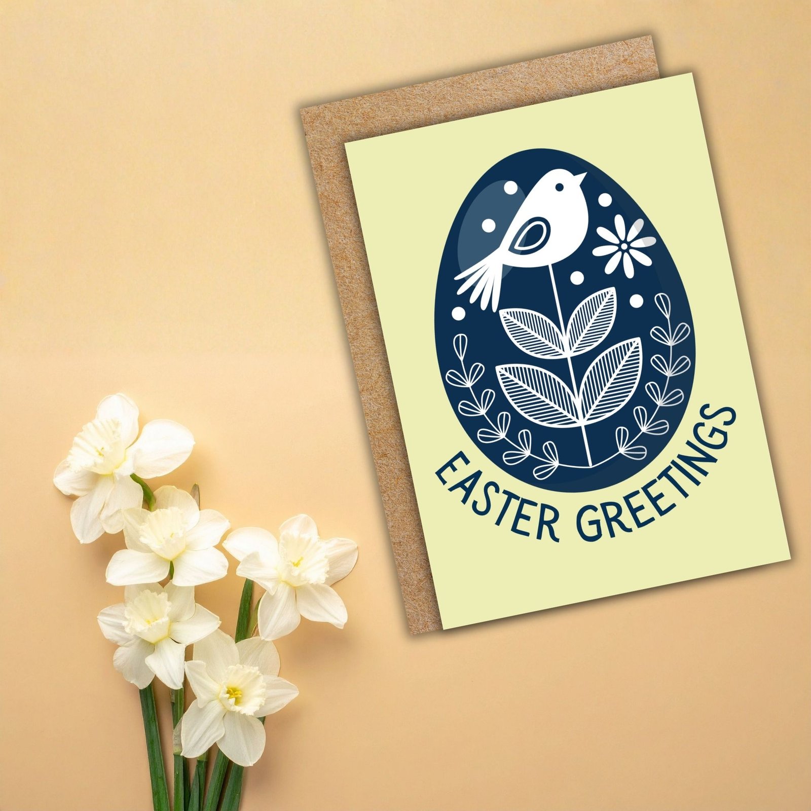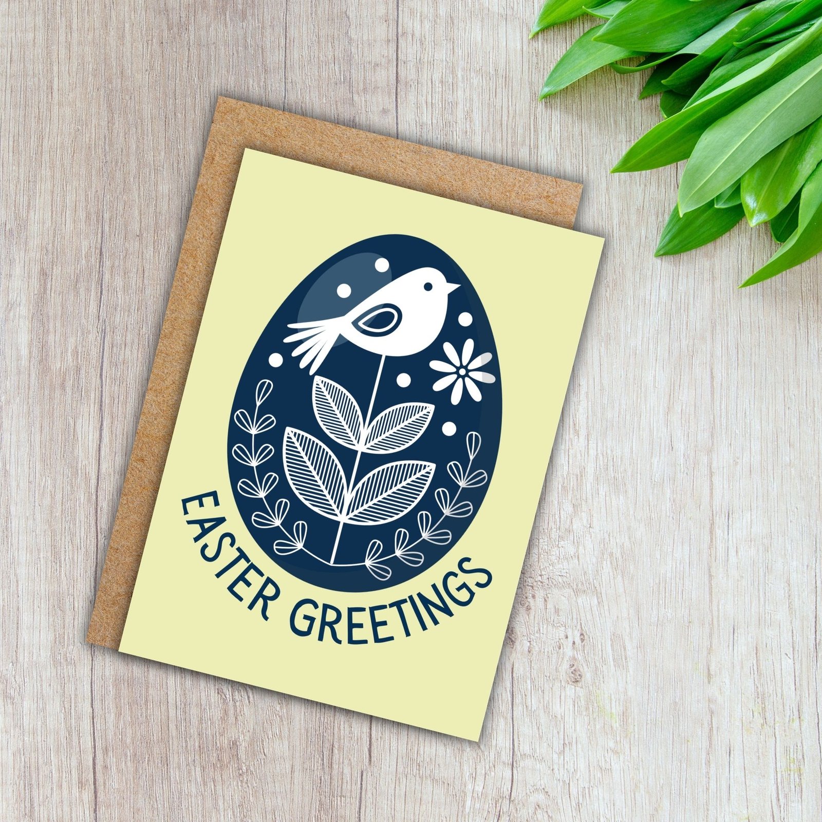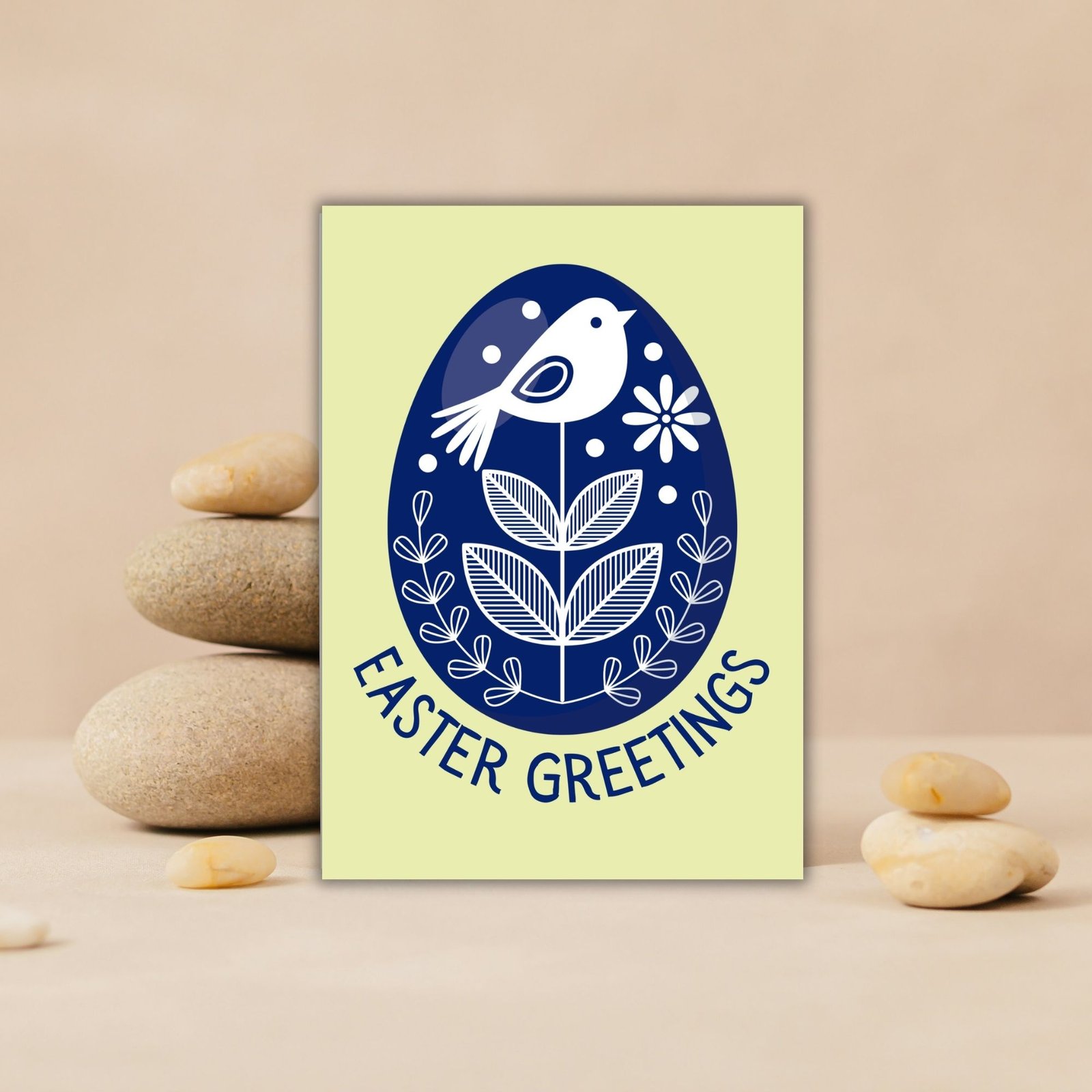Featuring a beautifully detailed blue folk-style egg adorned with delicate birds, this Easter card brings a timeless, traditional feel to the season.