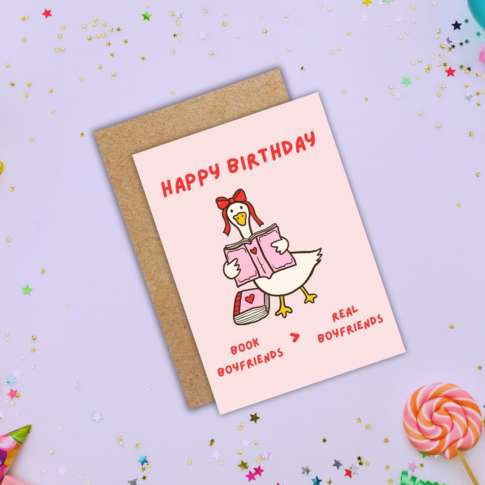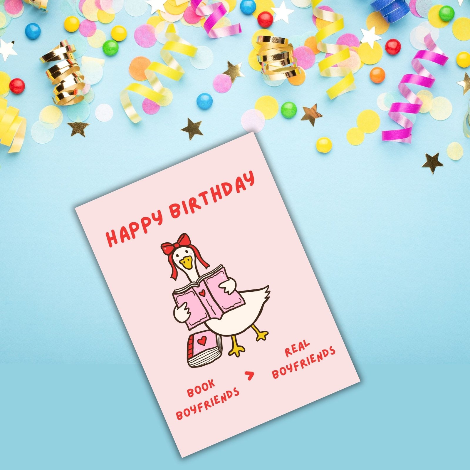 This card leans into that slightly chaotic, very honest bookish humour — perfect for romance readers, fantasy lovers, and anyone with a growing list of imaginary crushes.