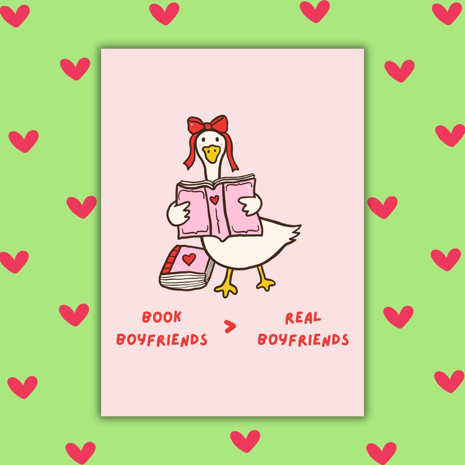 This bold and relatable “Book Boyfriends > Real Boyfriends” Galentine’s Day card is made for the reader bestie who’d rather be lost in a fictional world than dealing with real-life dating nonsense.
