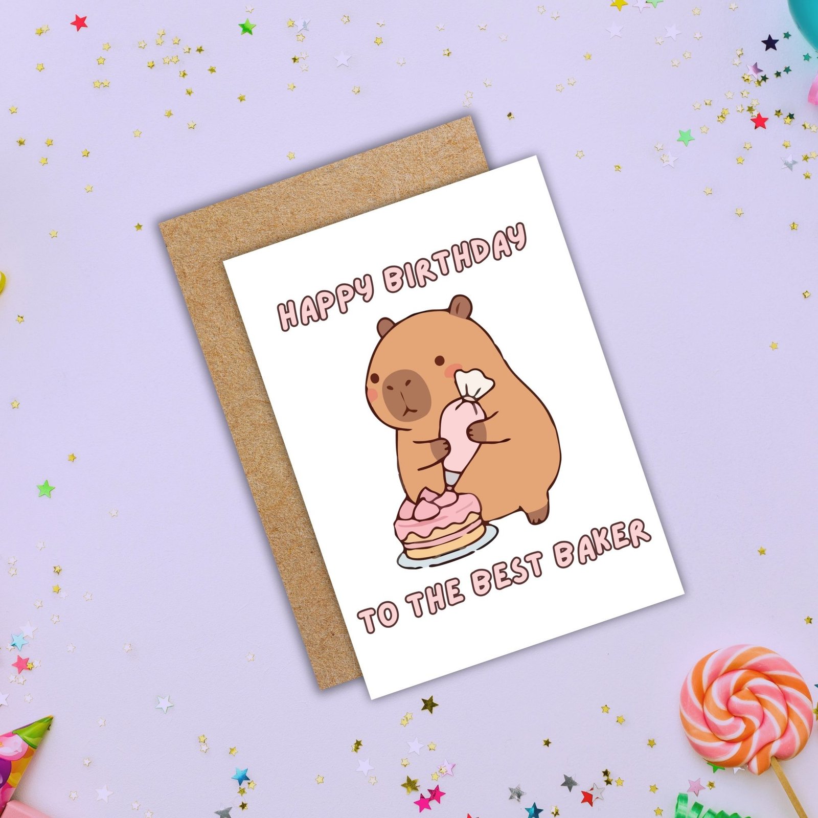 Featuring an adorable capybara mid-bake, this design is all about cosy kitchen vibes, sweet treats, and that quiet joy of making something delicious from scratch.