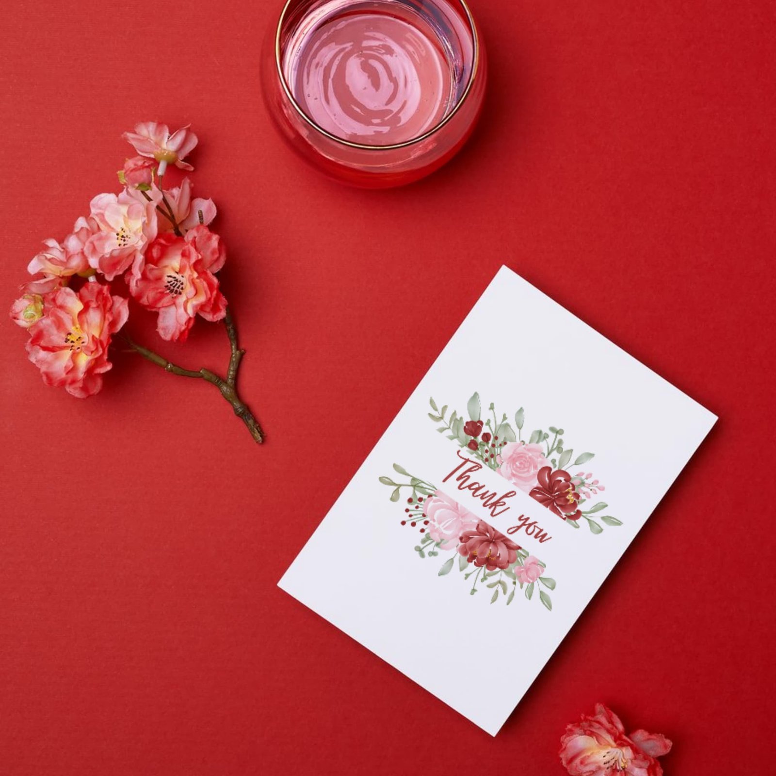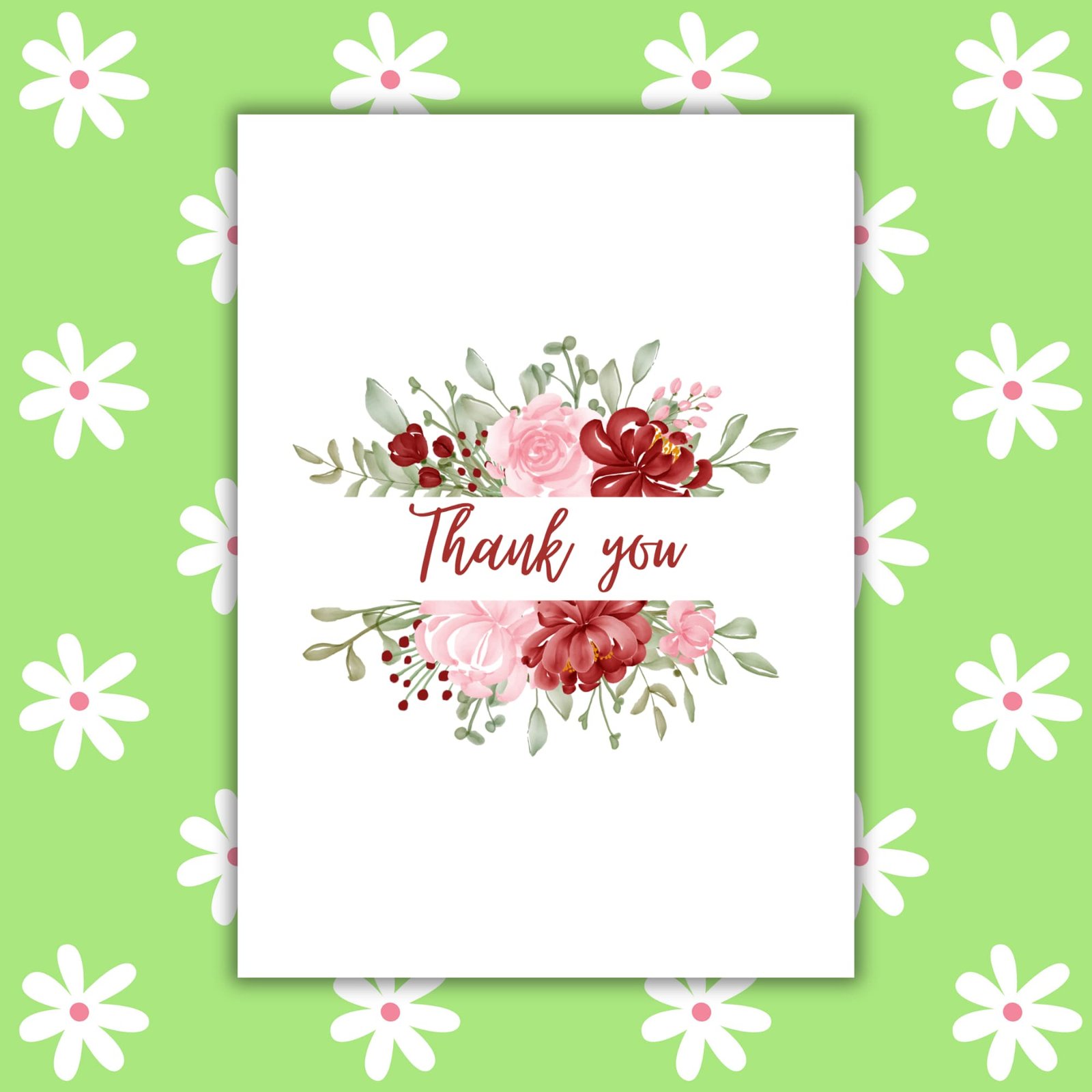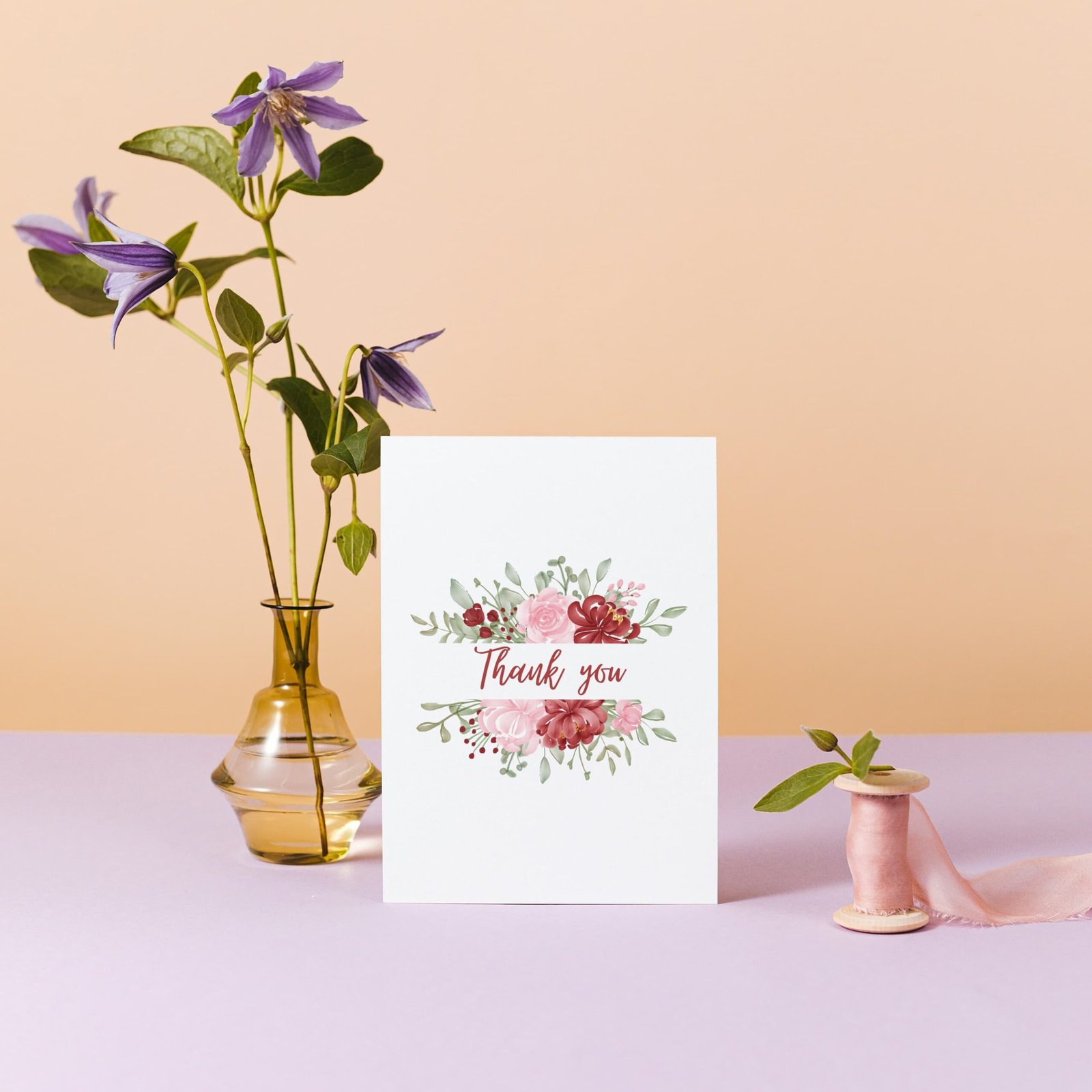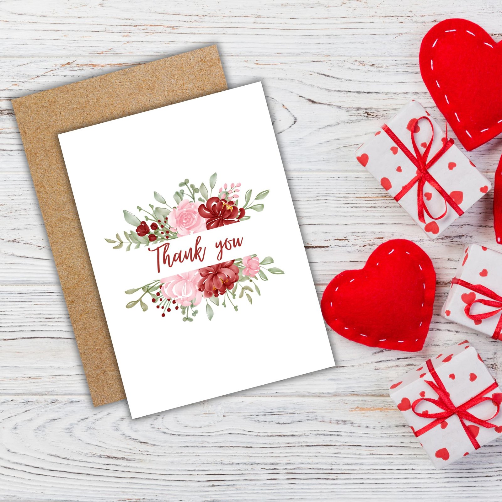 Say thanks with style using this beautiful, understated card featuring a delicate banner of flowers and the heartfelt words “Thank You” in the center. Perfect for any occasion where you want to express gratitude with a touch of elegance.