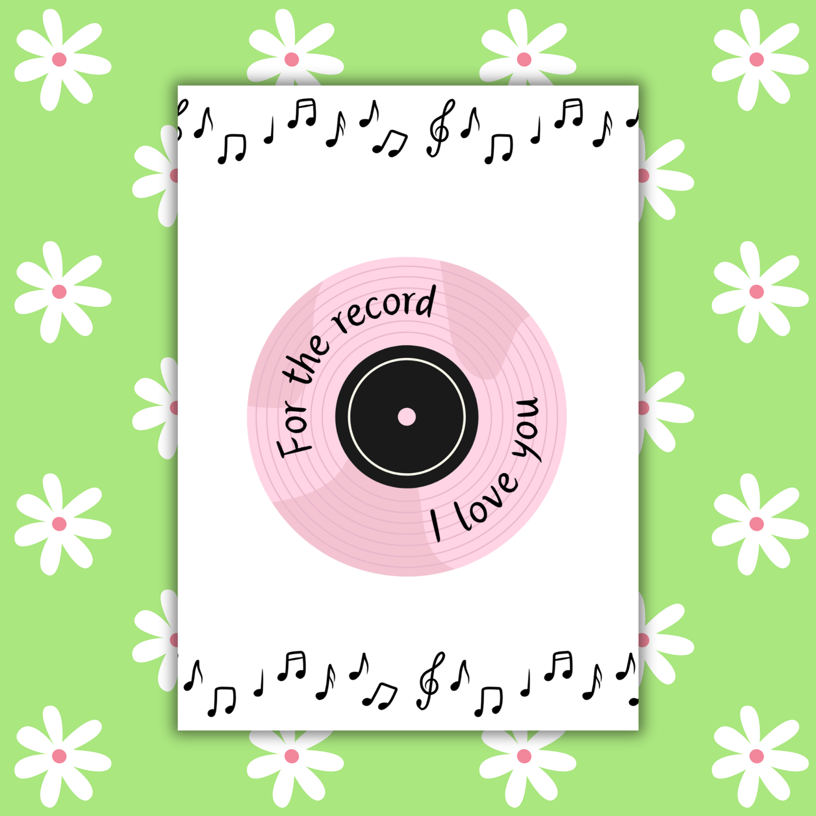 Drop the needle on your love with this music-themed card! Featuring a cool vinyl record design, it’s the perfect way to say “I love you” to the one who makes your heart sing.