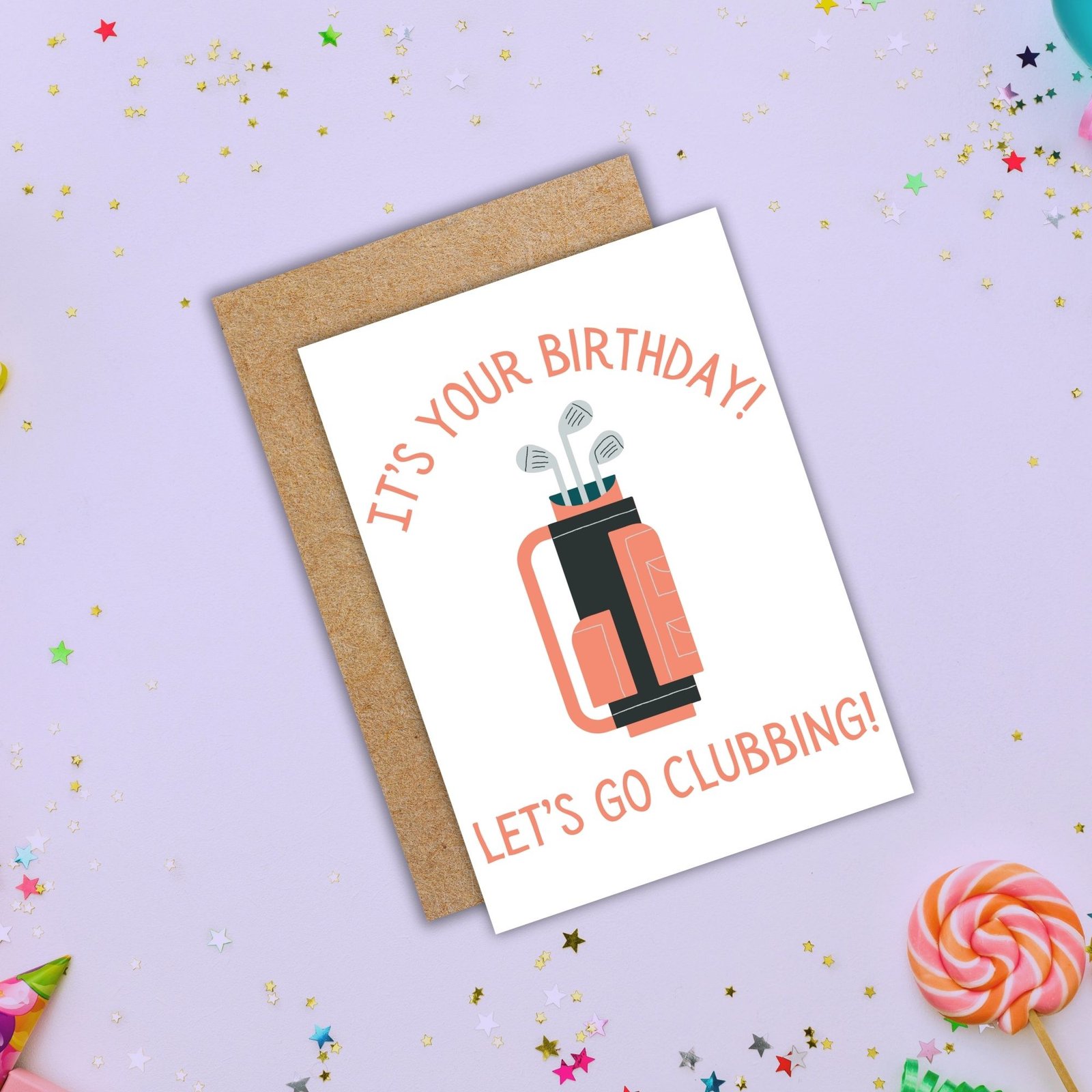 Featuring a golf bag full of clubs, this design plays on the classic “clubbing” joke — making it perfect for someone who’d always choose the course over a night out.