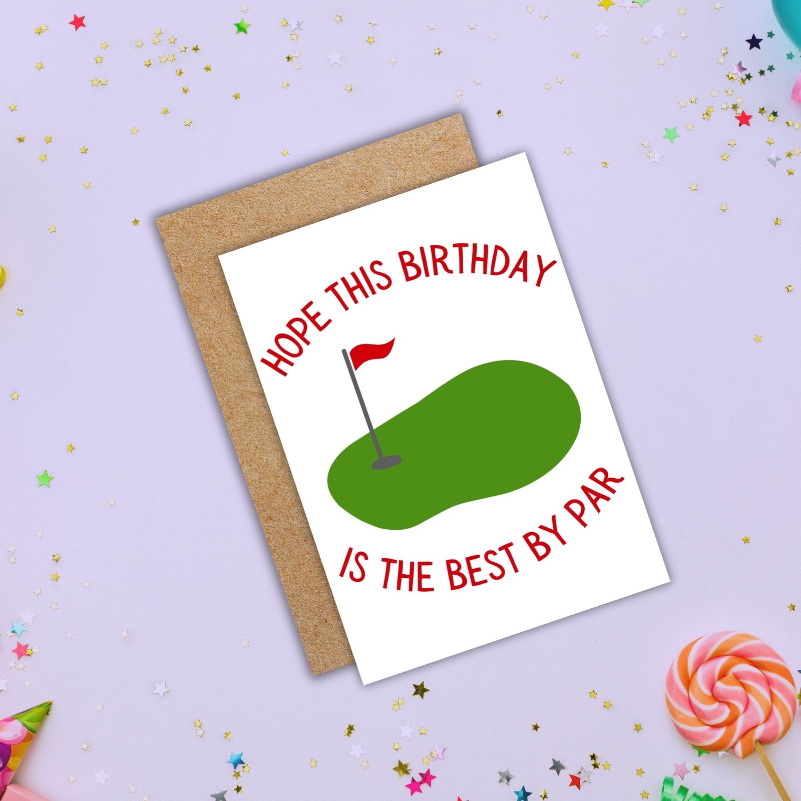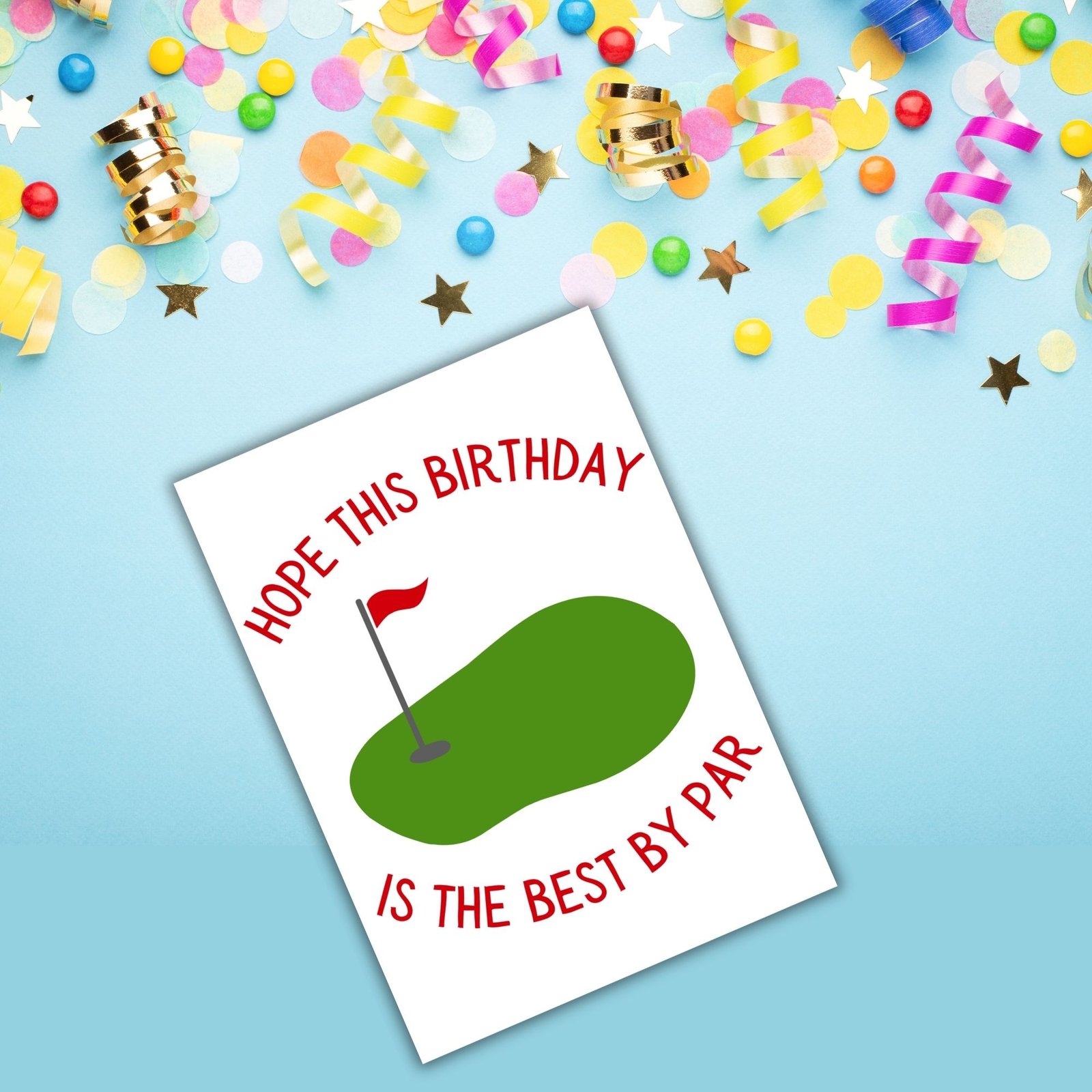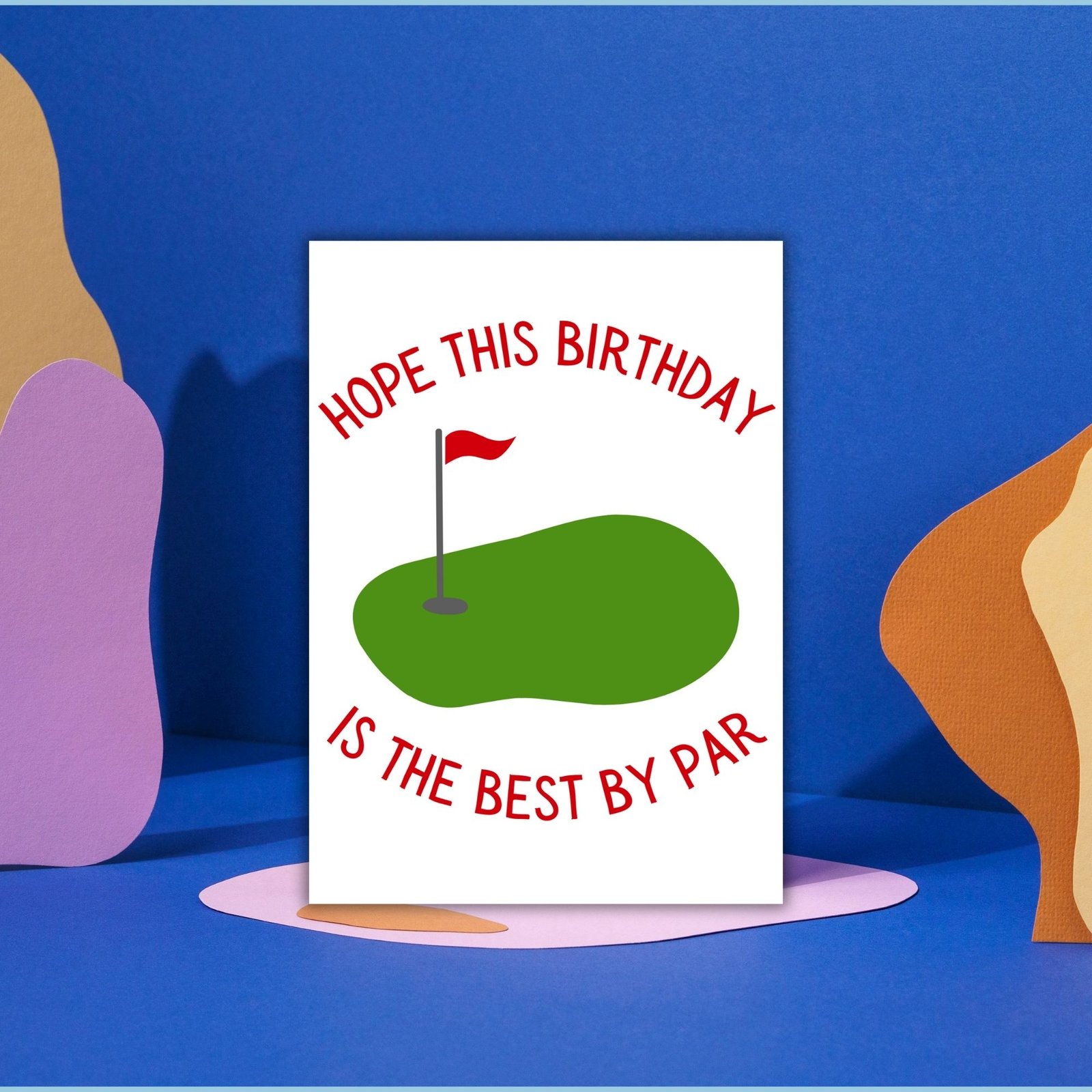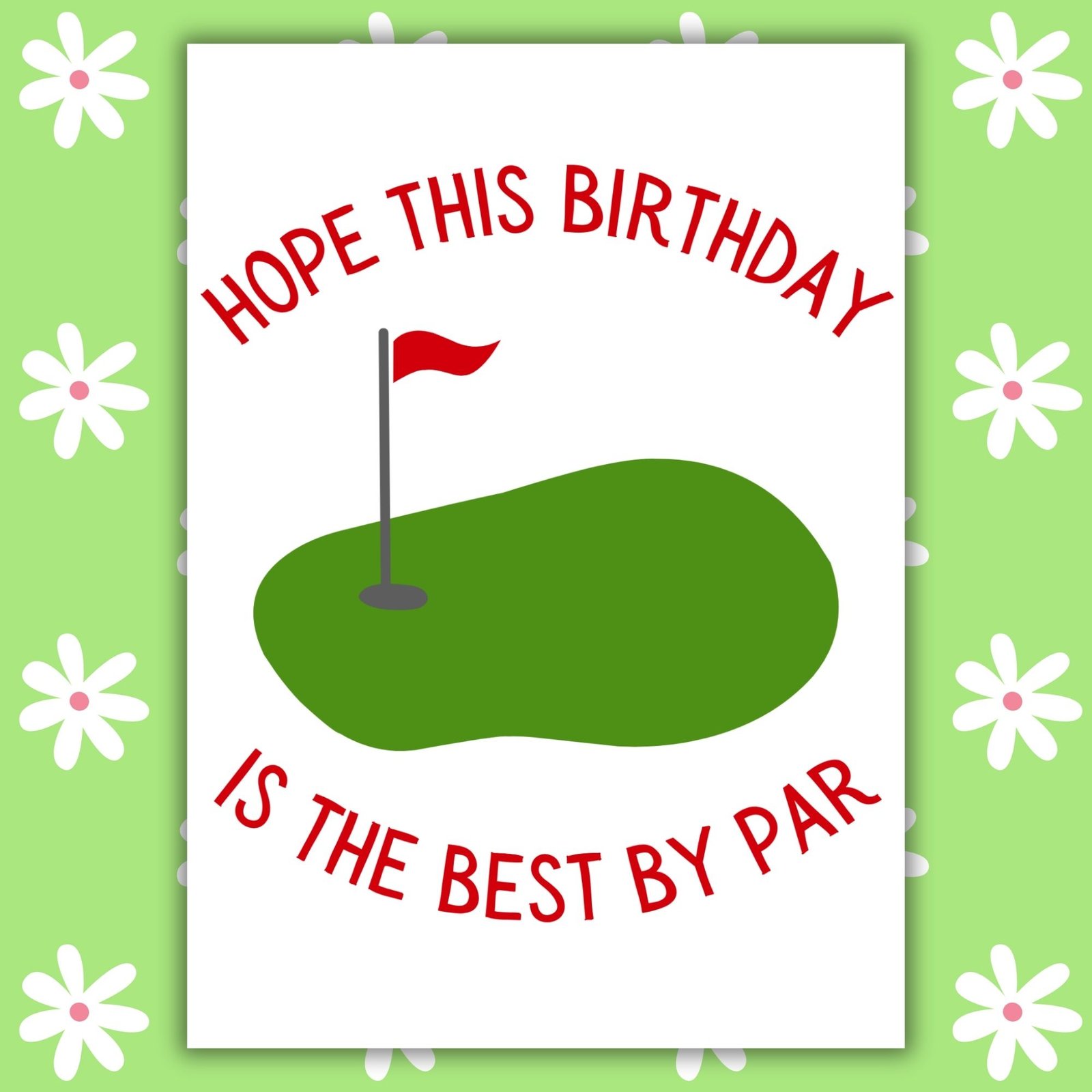 Featuring a golf course scene, this design feels calm, classic, and just the right amount of playful — perfect for golfers who appreciate the game and a good pun.
