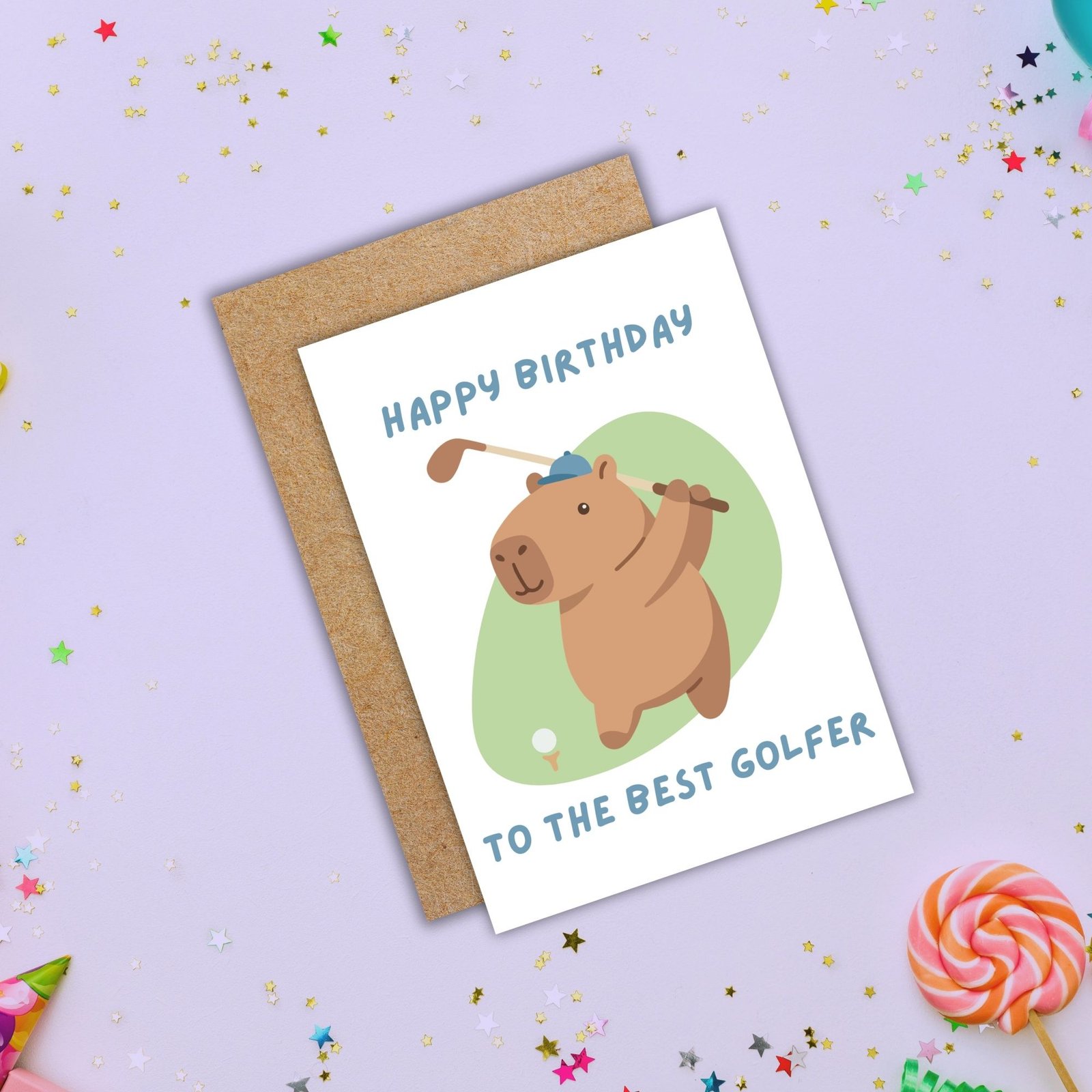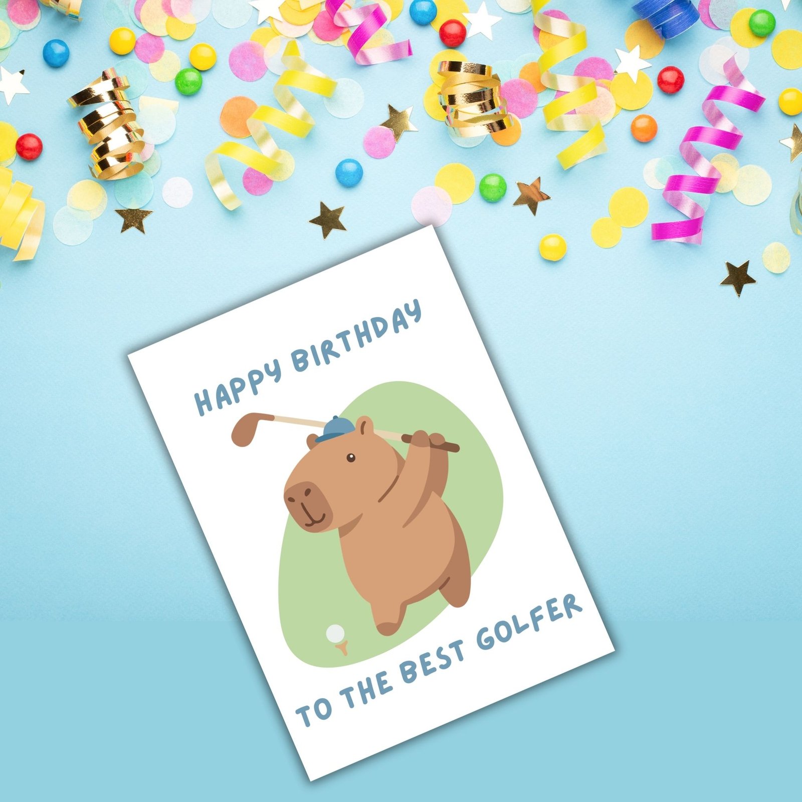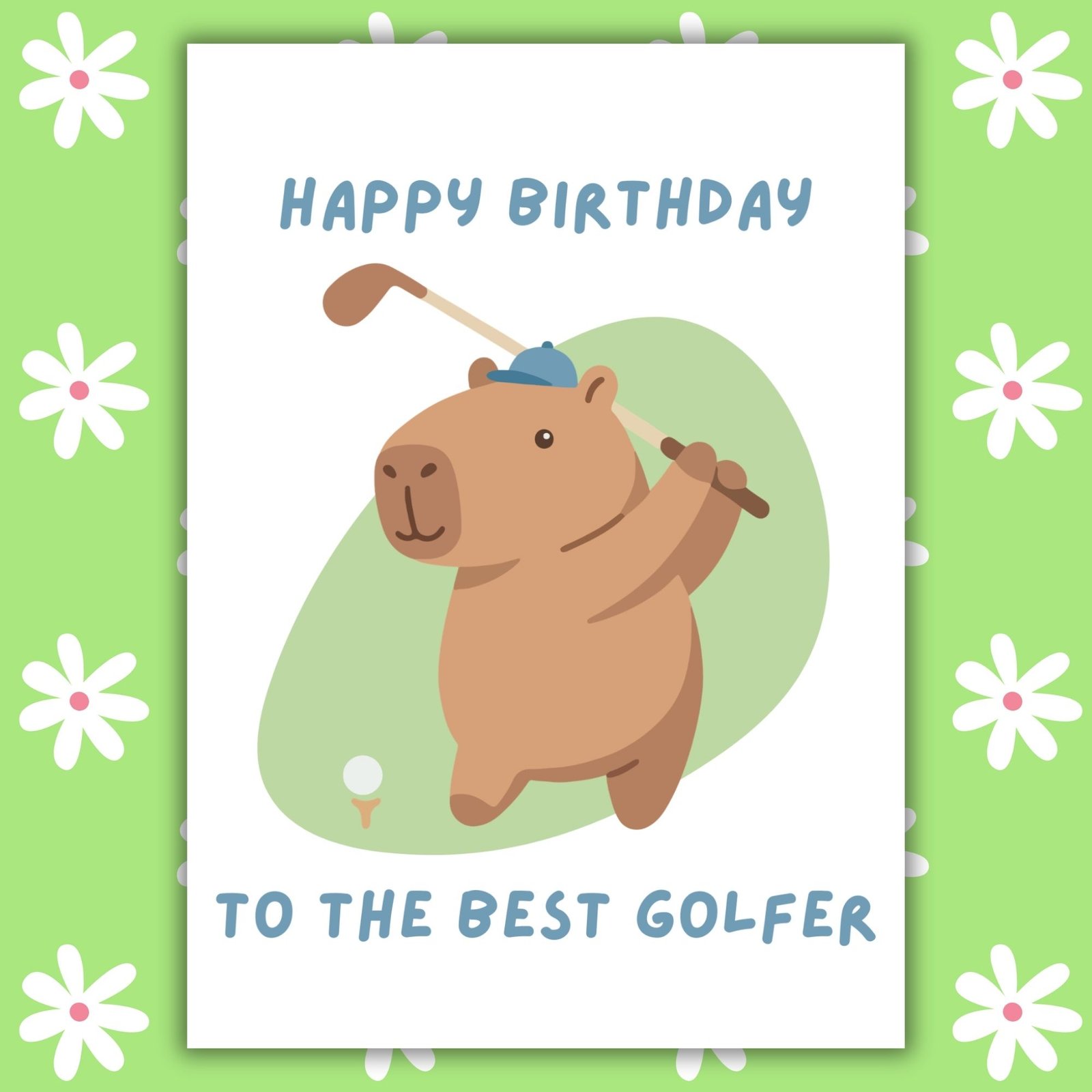 A wholesome, slightly iconic birthday card featuring a capybara out on the course ⛳🐾
