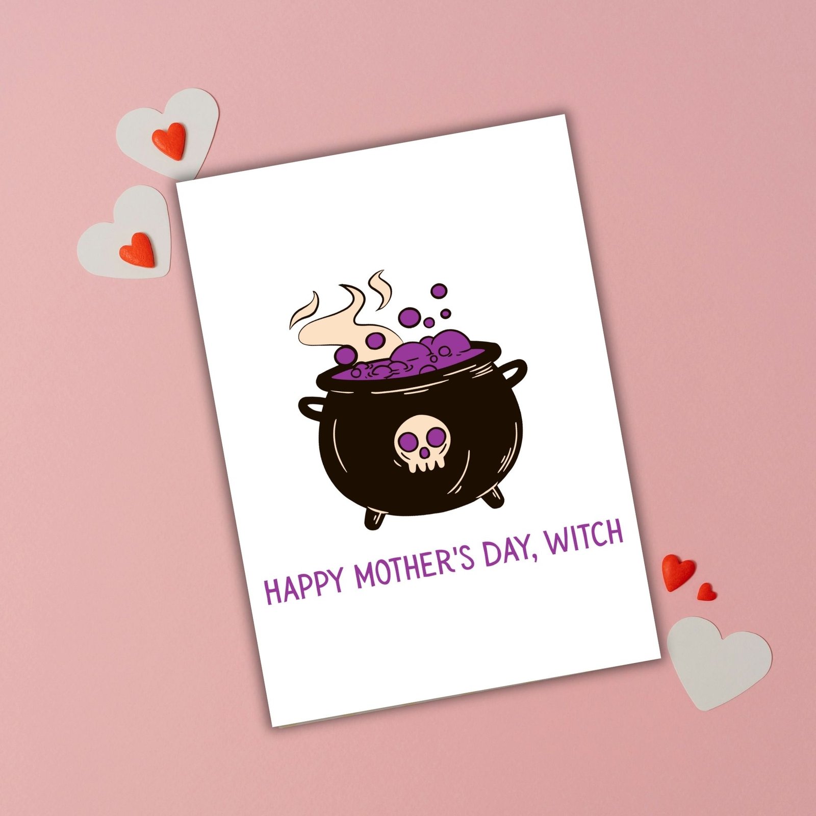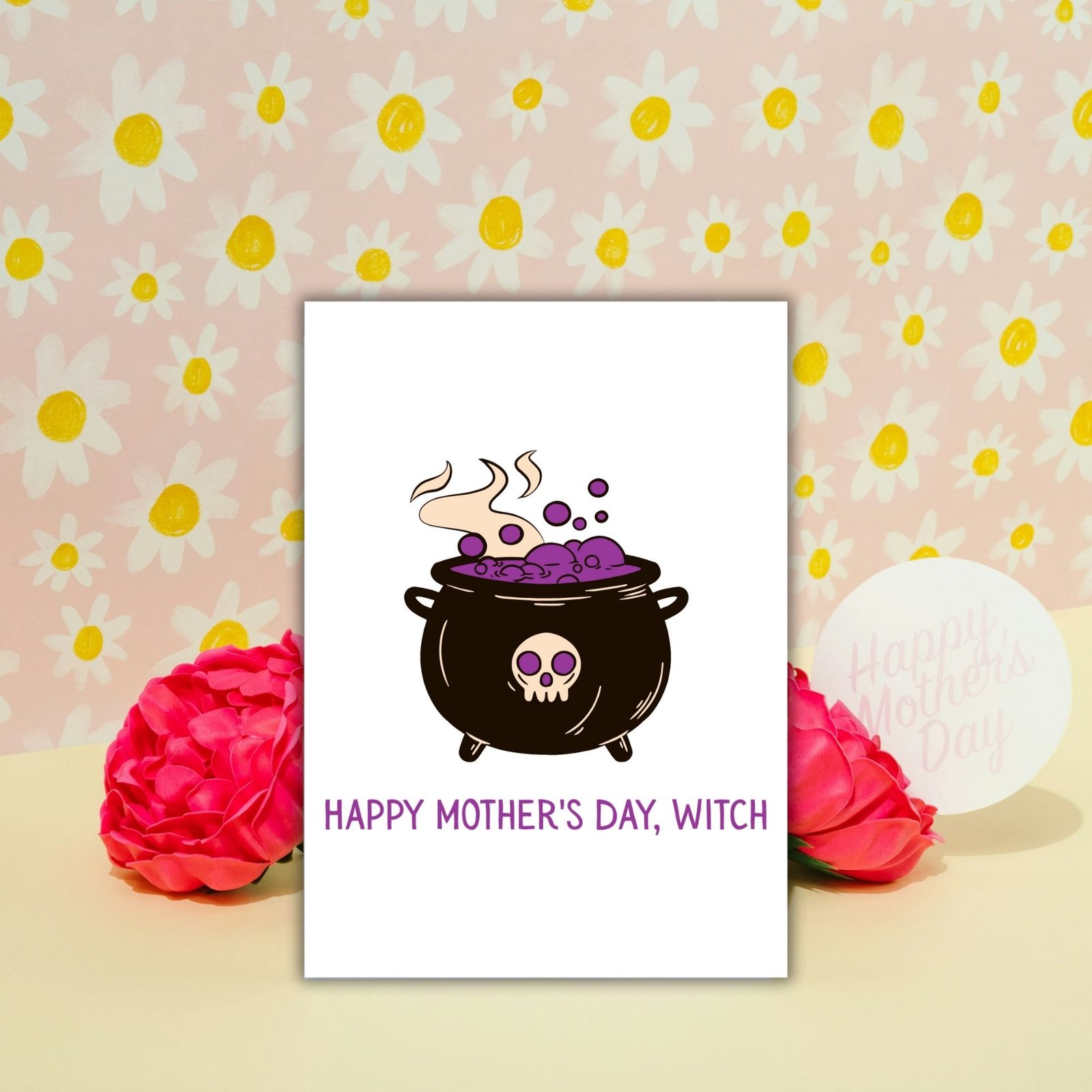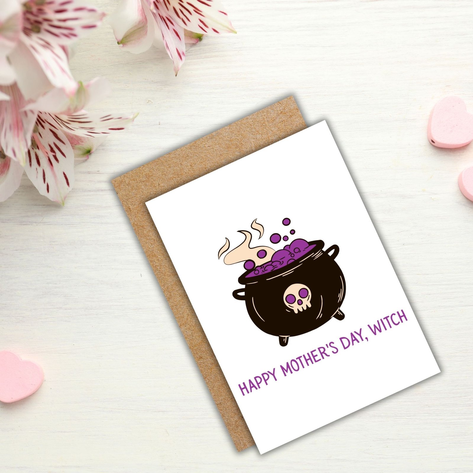 This fun, witchy Mother’s Day card is perfect for mums who love a bit of magic, mystery, and humour. Cute rather than spooky, it celebrates the kind of mum who keeps everything running with pure witchcraft (and maybe a cup of tea).