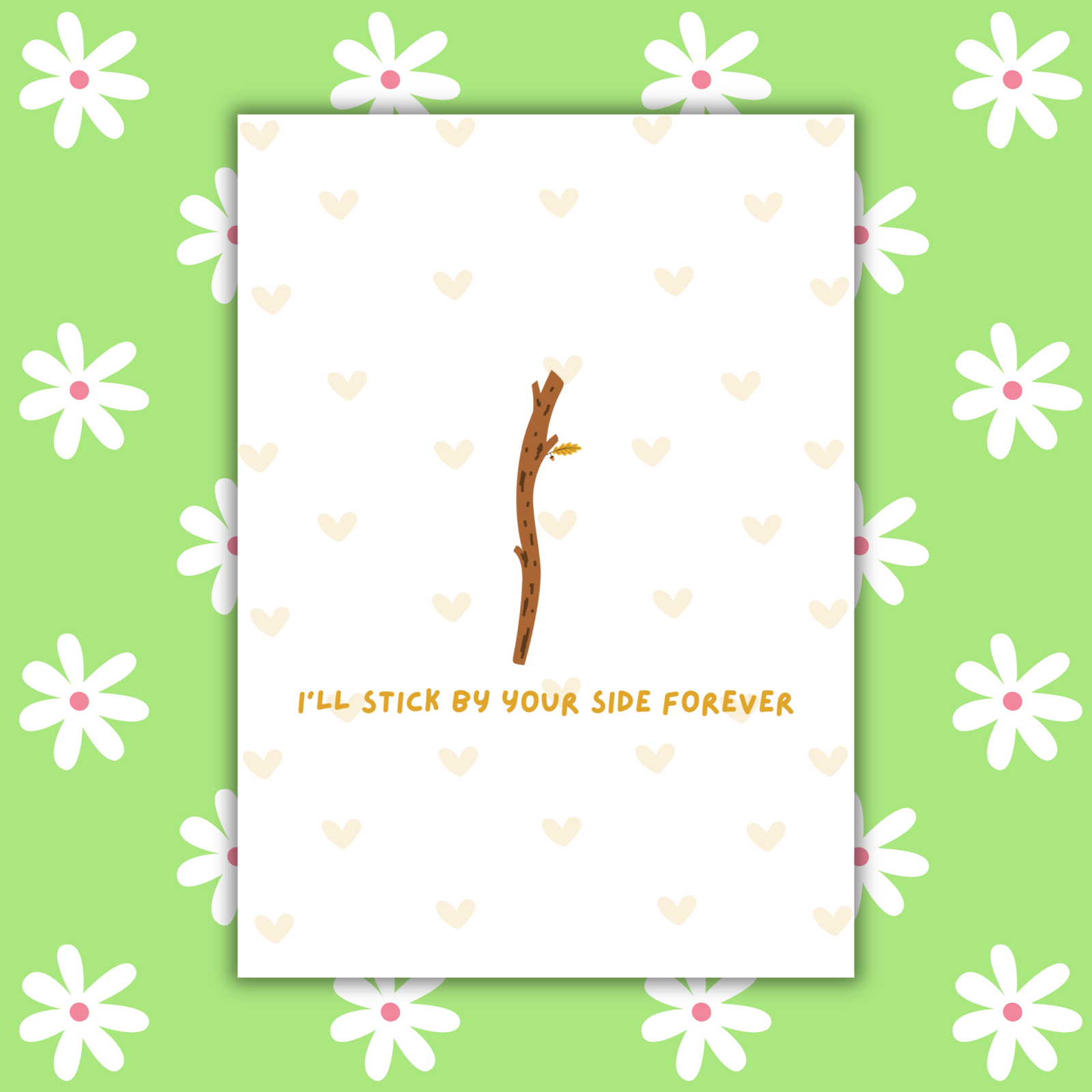 Show your commitment with this adorable and punny card! Featuring a simple yet sweet design of a stick, it’s a playful way to tell your special someone you’ll be with them through thick and thin.