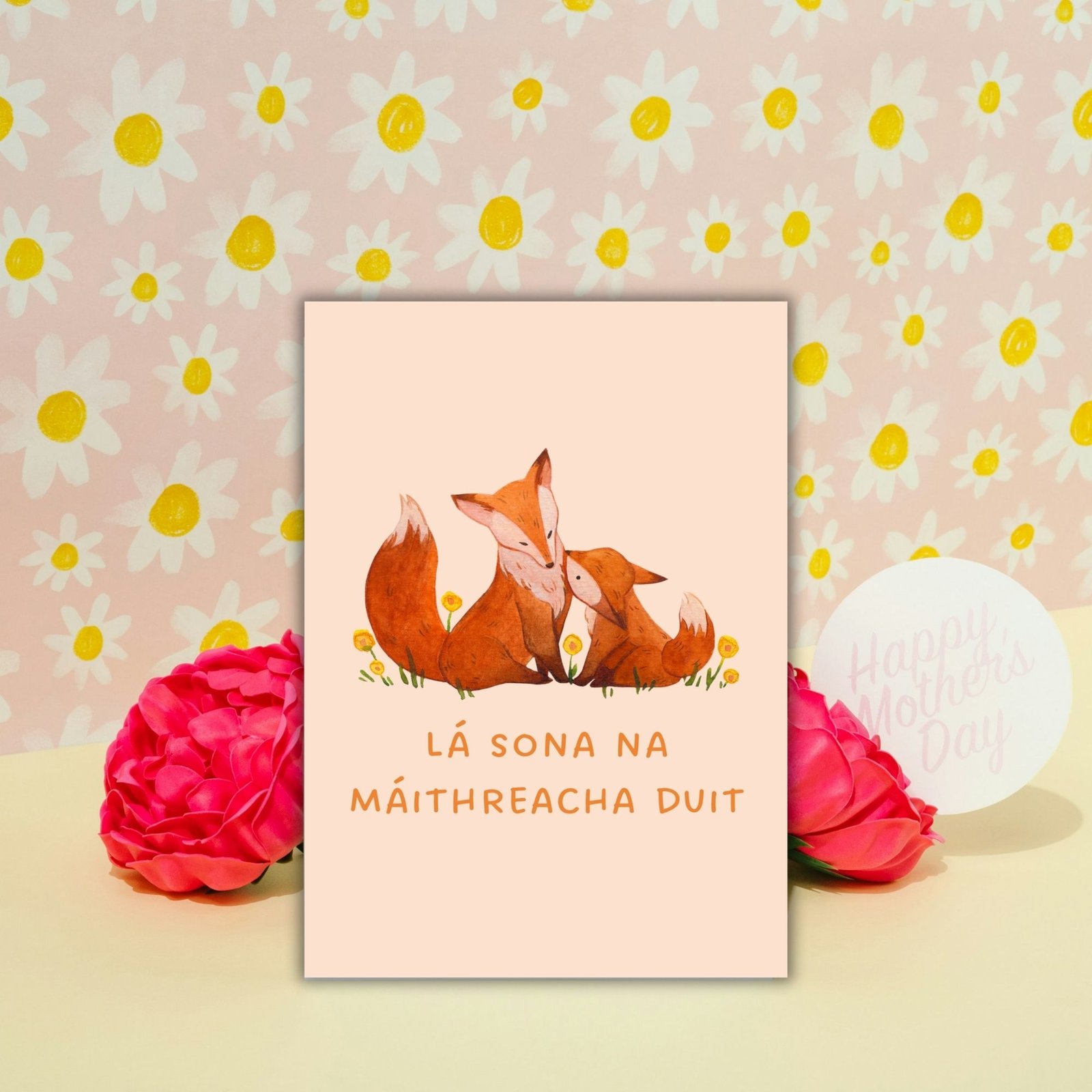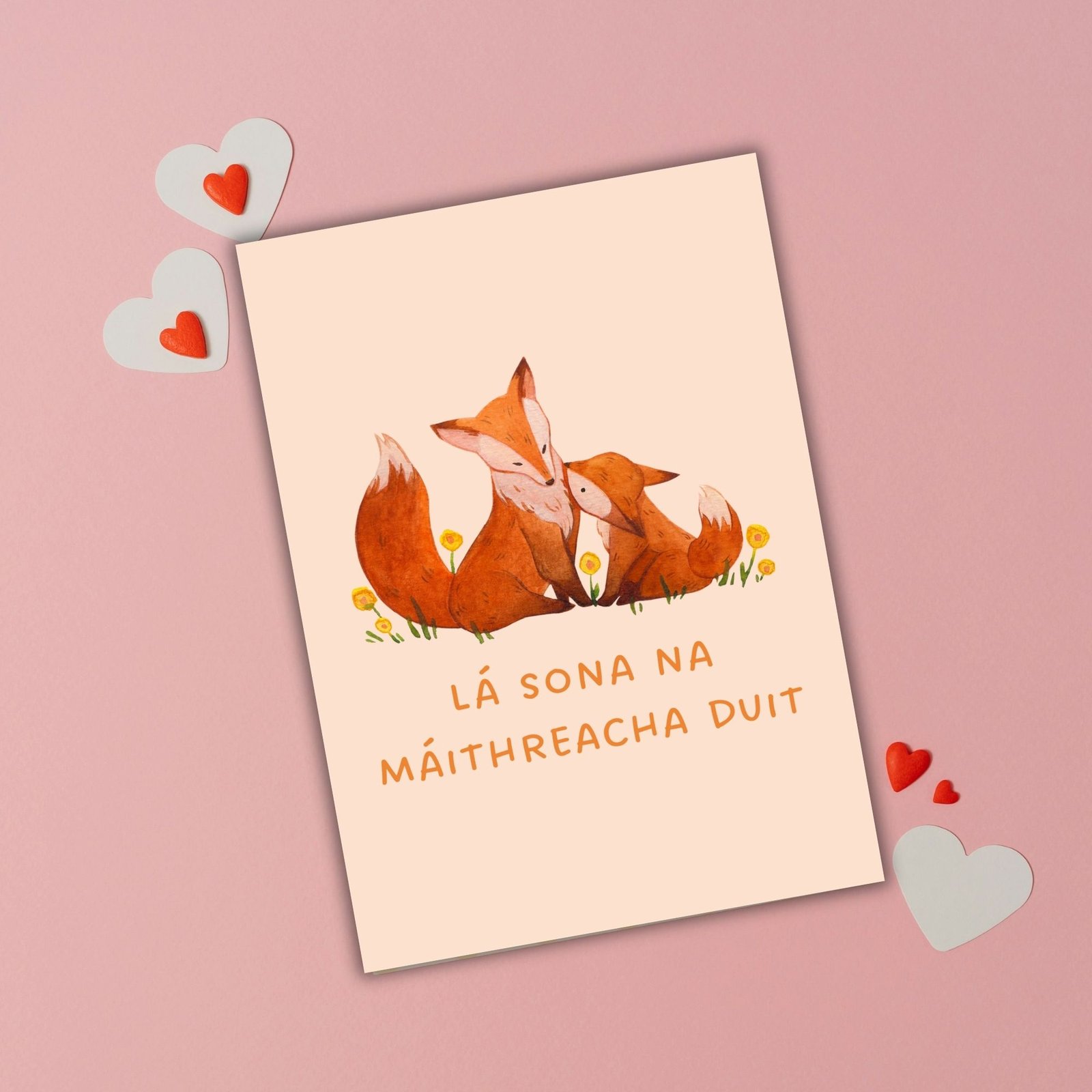 The foxes symbolise closeness, protection and quiet love, making this a heartfelt choice for mums who treasure connection and Celtic heritage. A beautiful option for Irish-speaking families or anyone who feels a link to Ireland.