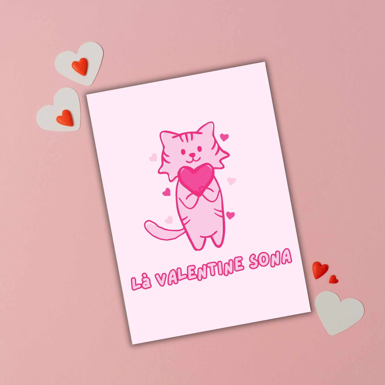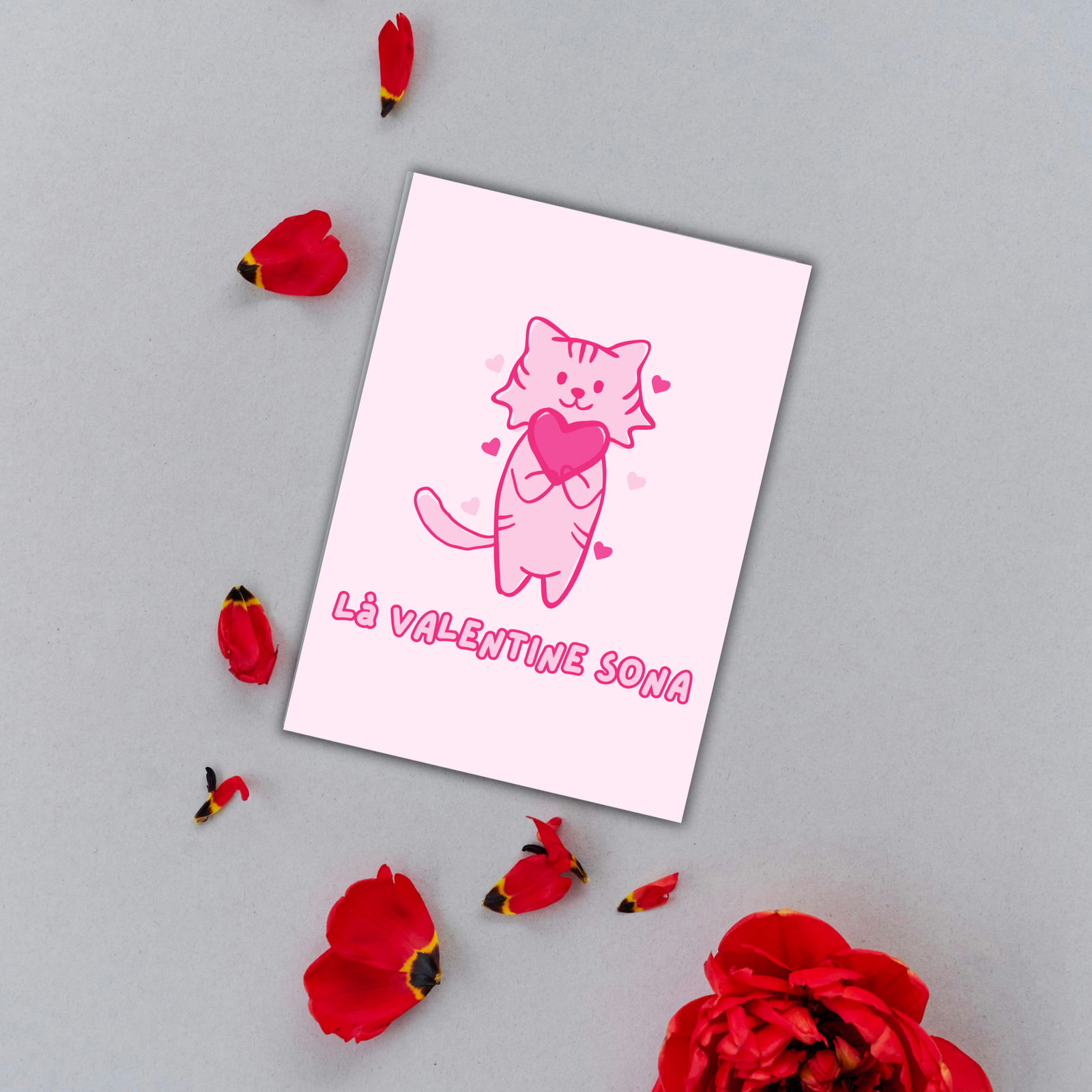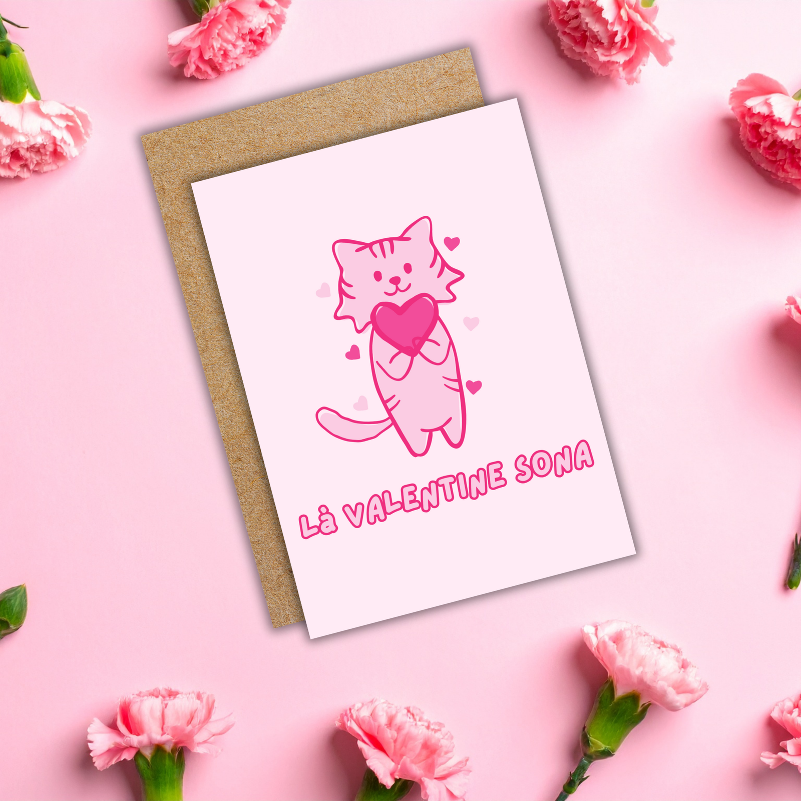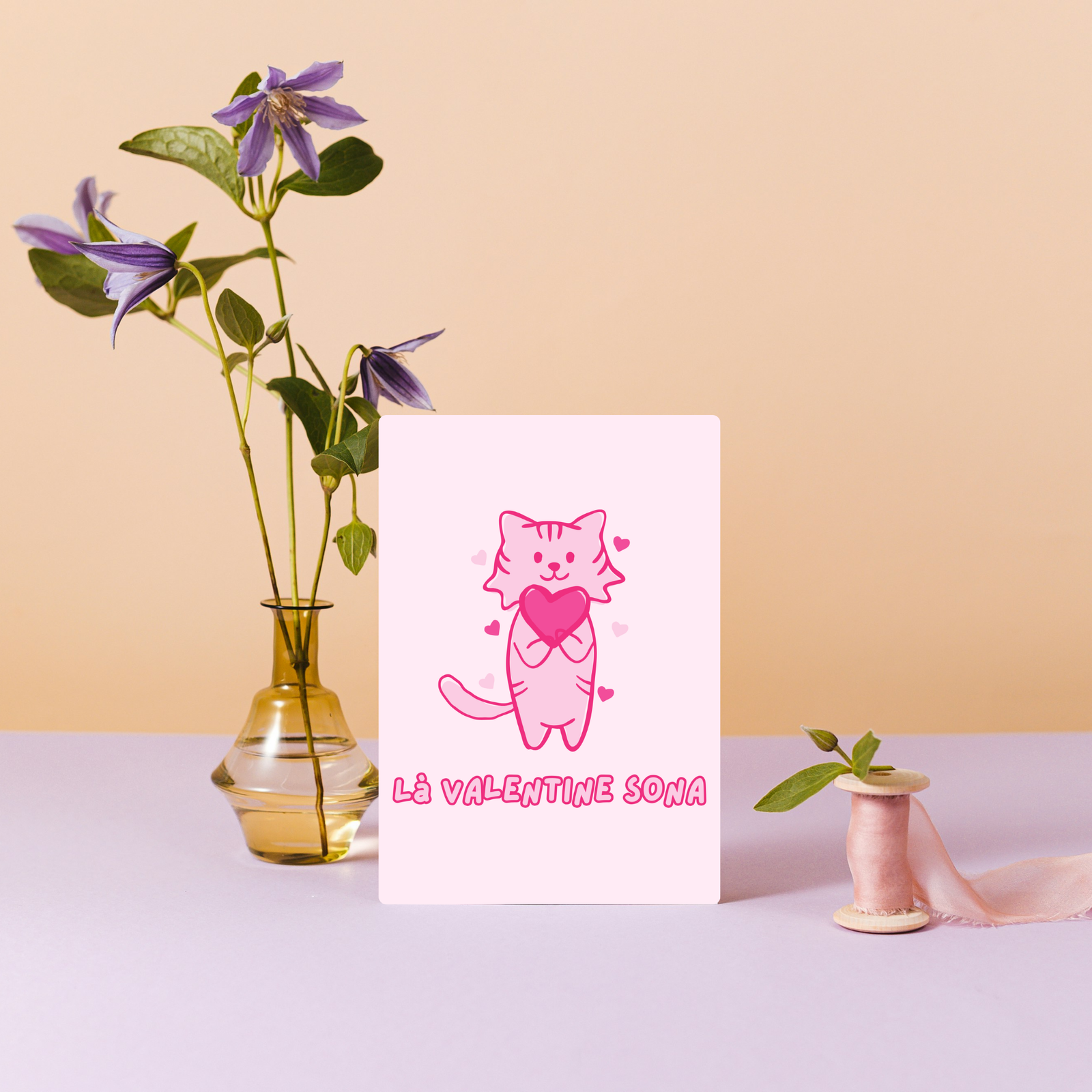 This Là Valentine sona card features a cute cat holding a heart, paired with the Scottish Gaelic phrase meaning “Happy Valentine’s Day.” It’s a gentle, joyful design — perfect for cat lovers, language lovers, or anyone who enjoys a thoughtful Valentine’s card with something a little different.