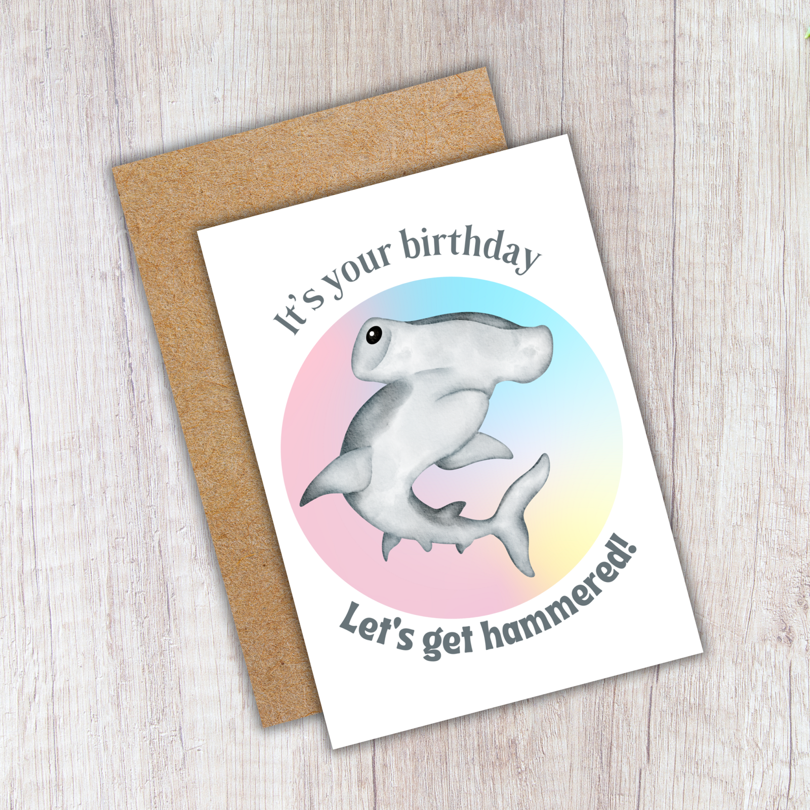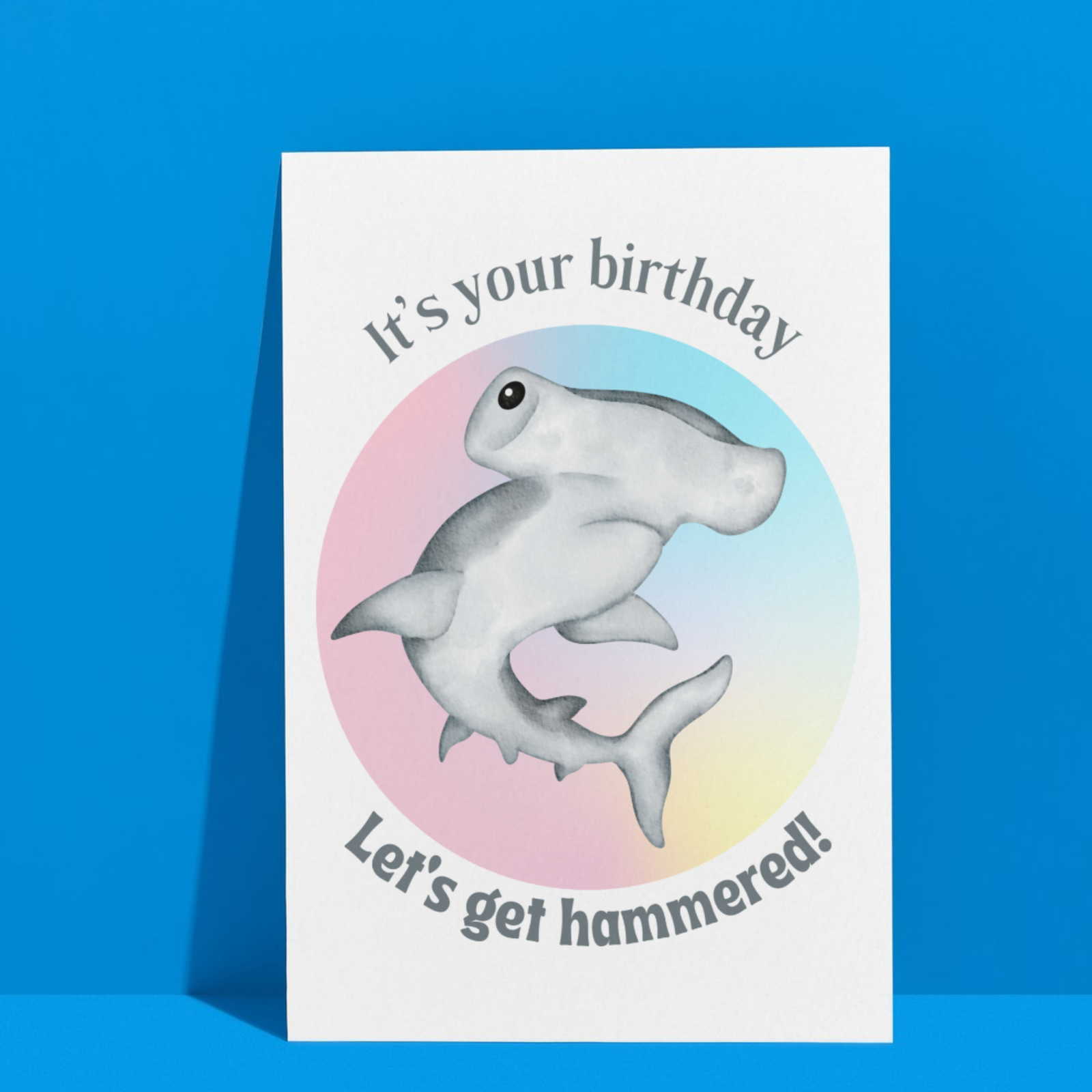 Let’s Get Hammered! πŸ¦ˆπŸ”¨ A fintastically punny birthday card for shark lovers.