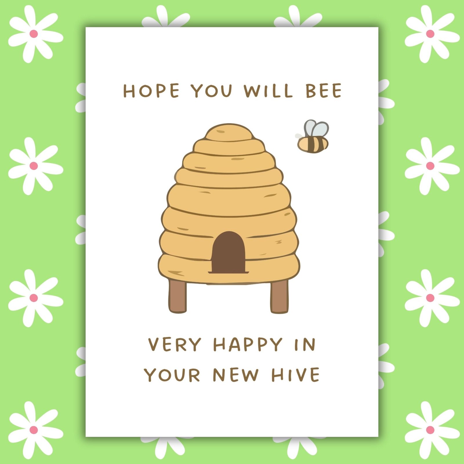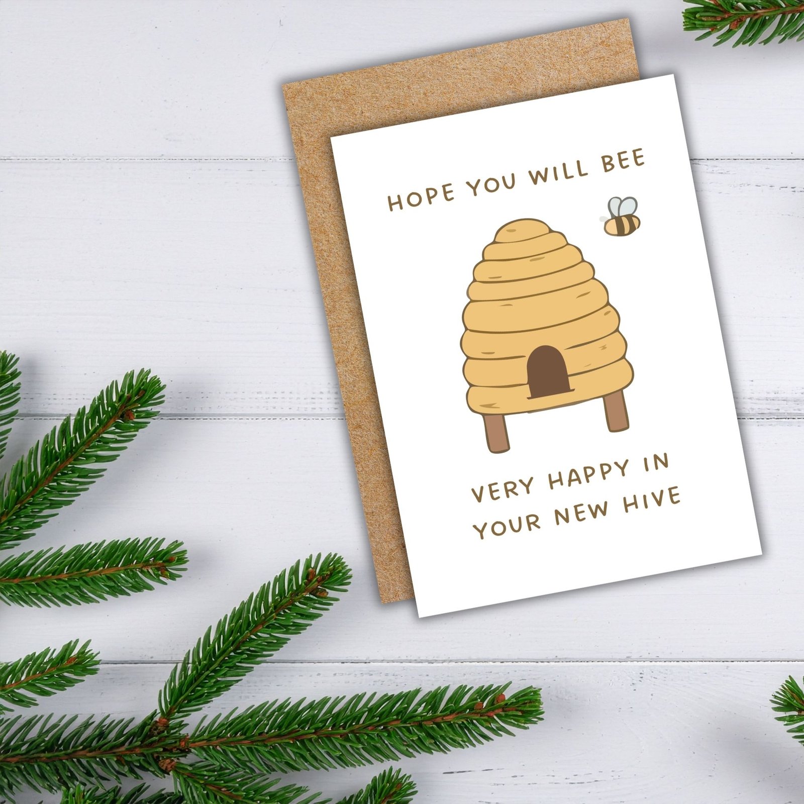 Featuring an adorable bee and their cosy hive, this cheerful housewarming card is perfect for celebrating a brand new place to call home.