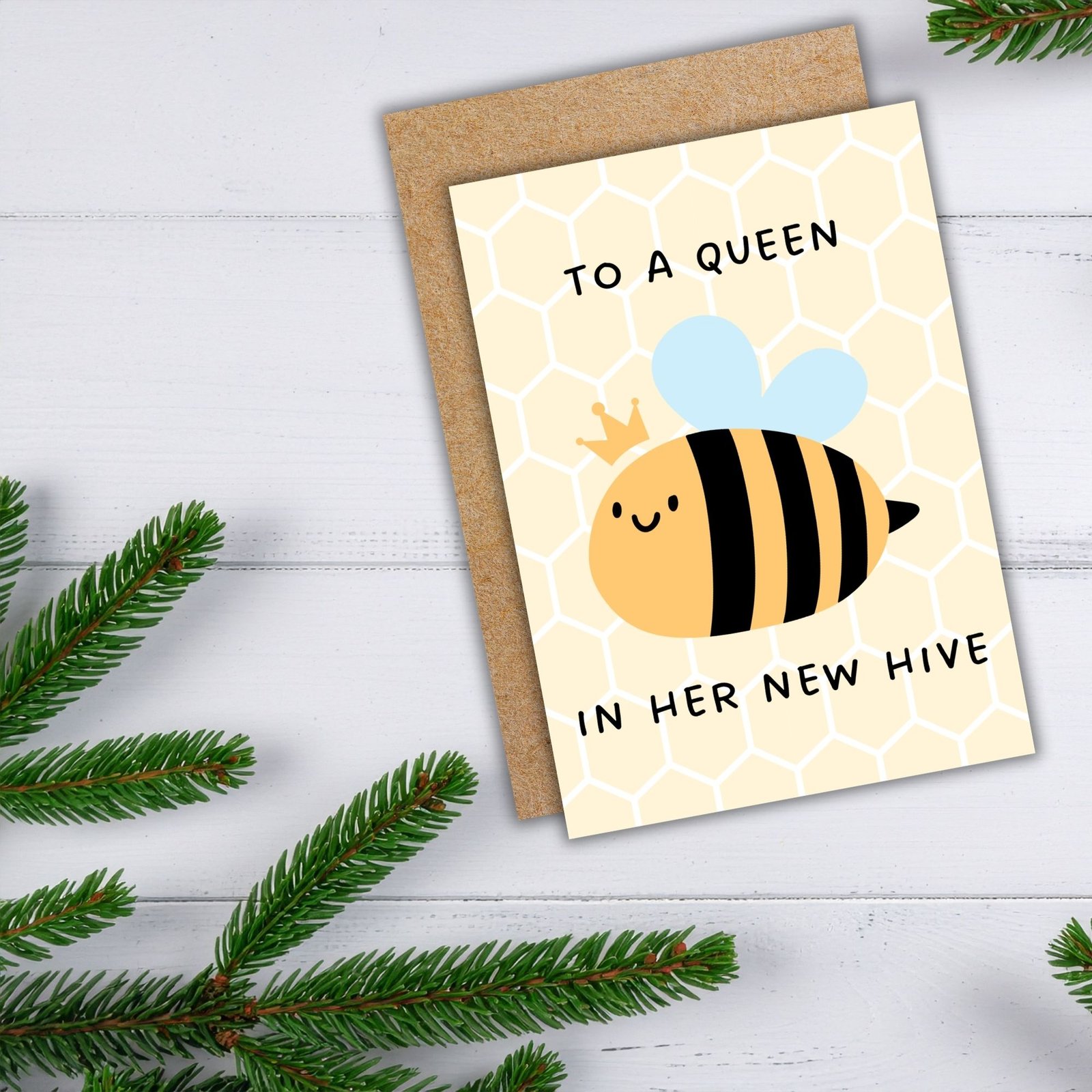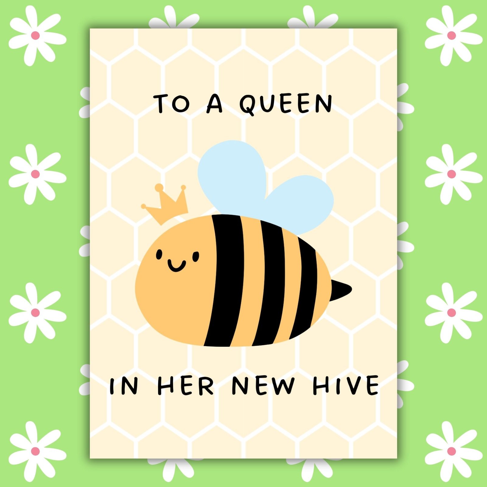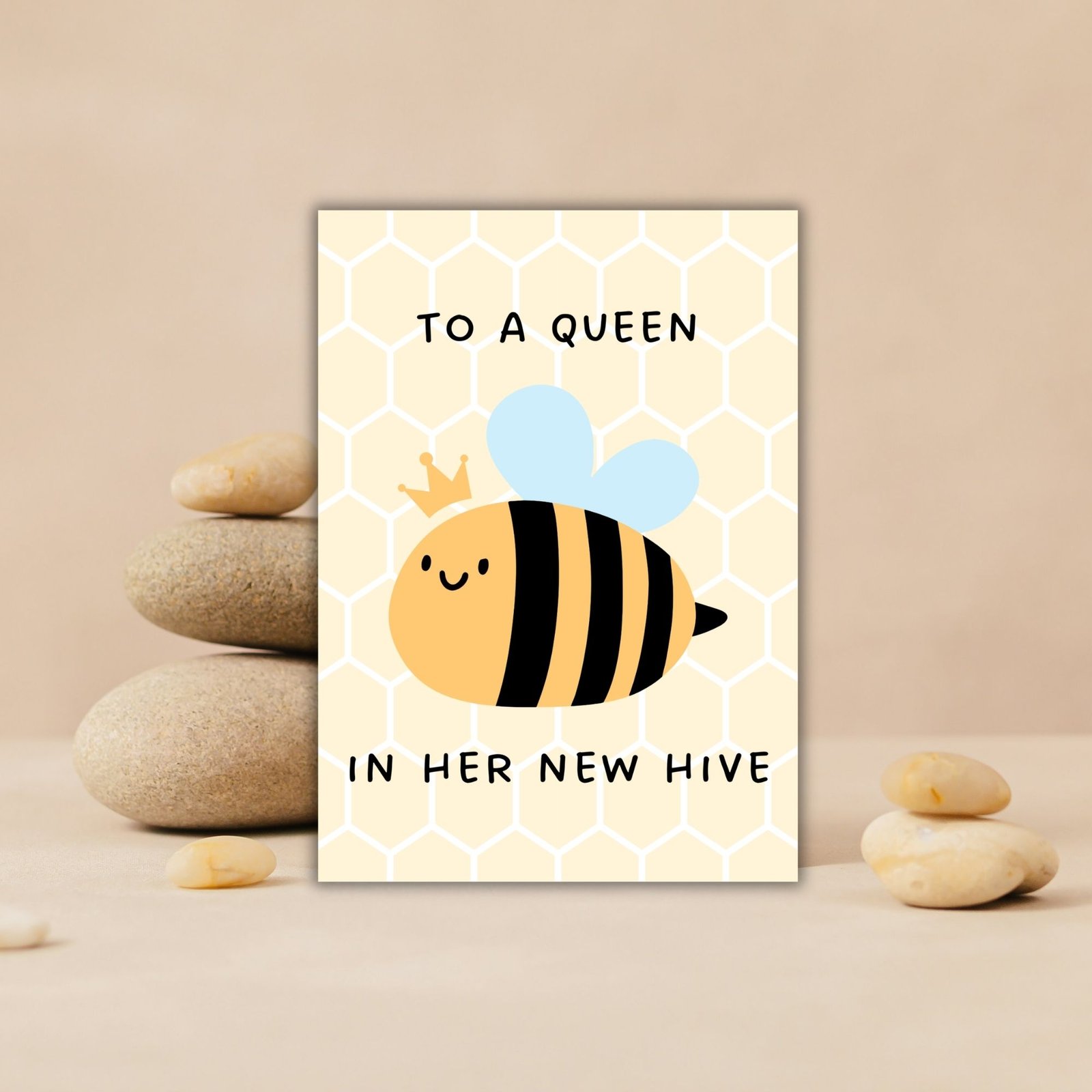 Featuring a fabulous queen bee settling into her new kingdom, this card is perfect for celebrating a powerful woman stepping into her next chapter.