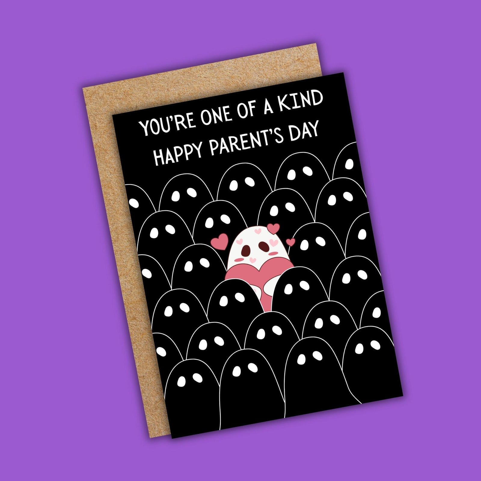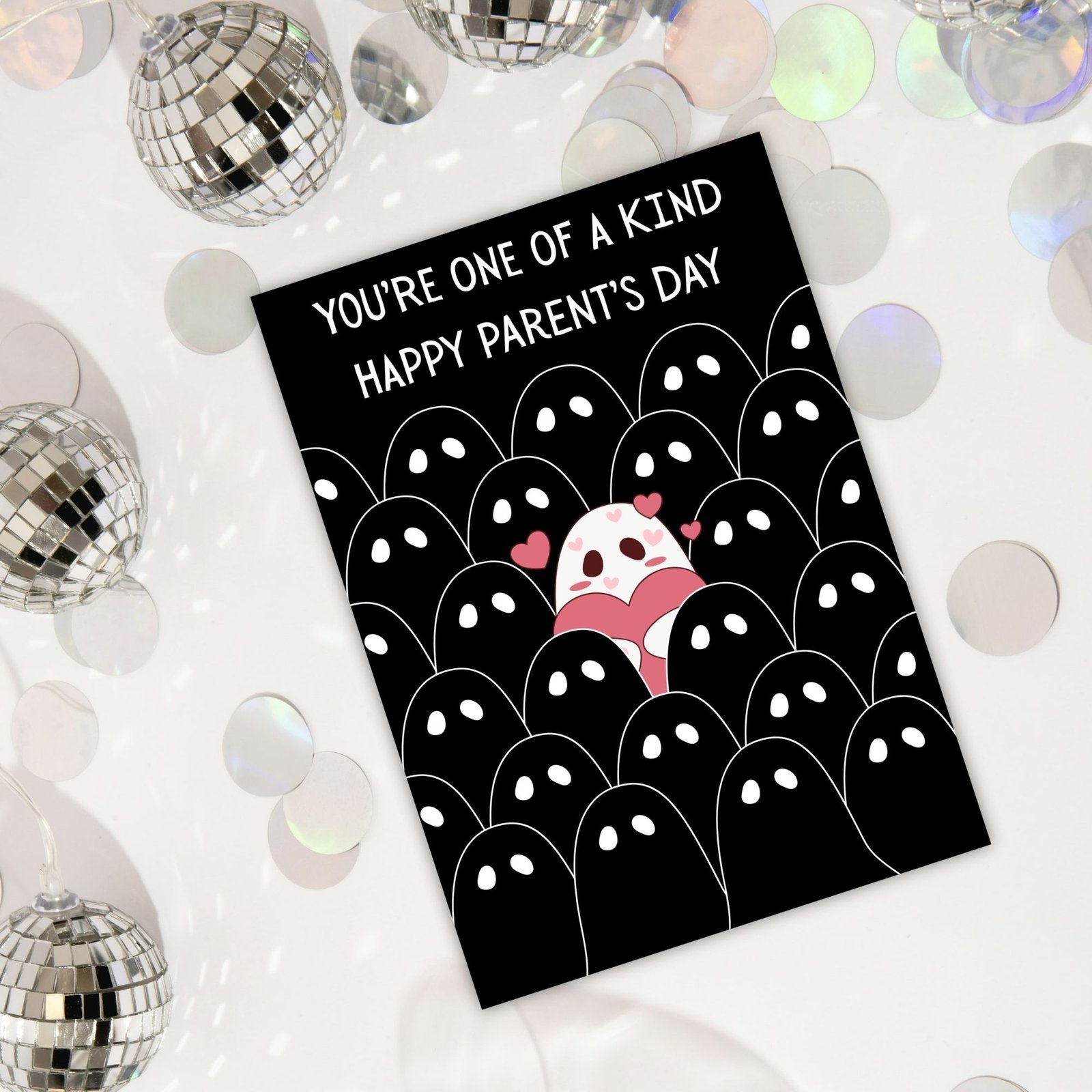 This playful design shows a pink “special ghost” among a crowd — because every parent is unique. Perfect for Non-Binary Parent’s Day or anytime you want to celebrate individuality.