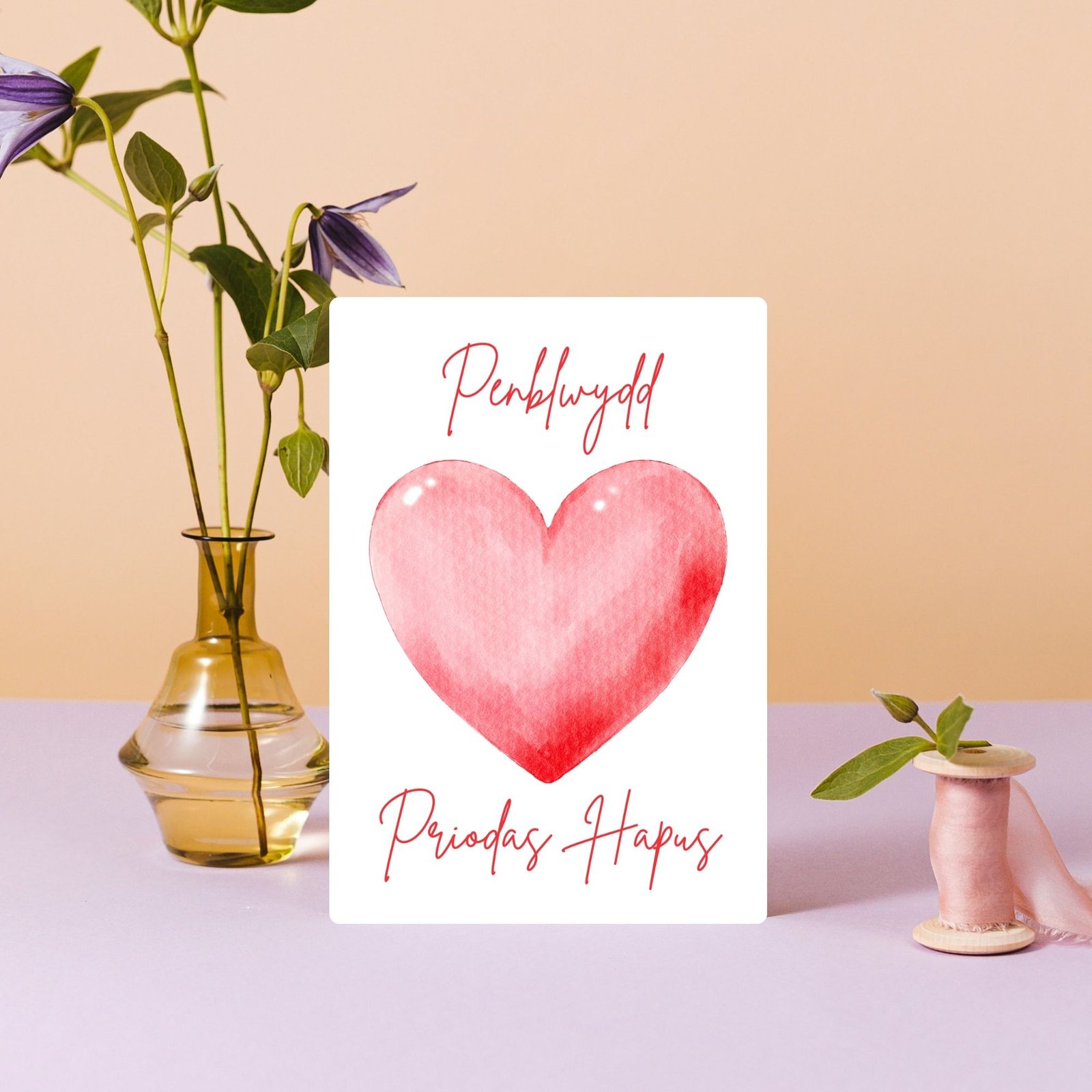 Celebrate your wedding anniversary in Welsh with this beautiful watercolour heart card. Soft, heartfelt, and elegant — perfect for the partner who makes every day brighter.