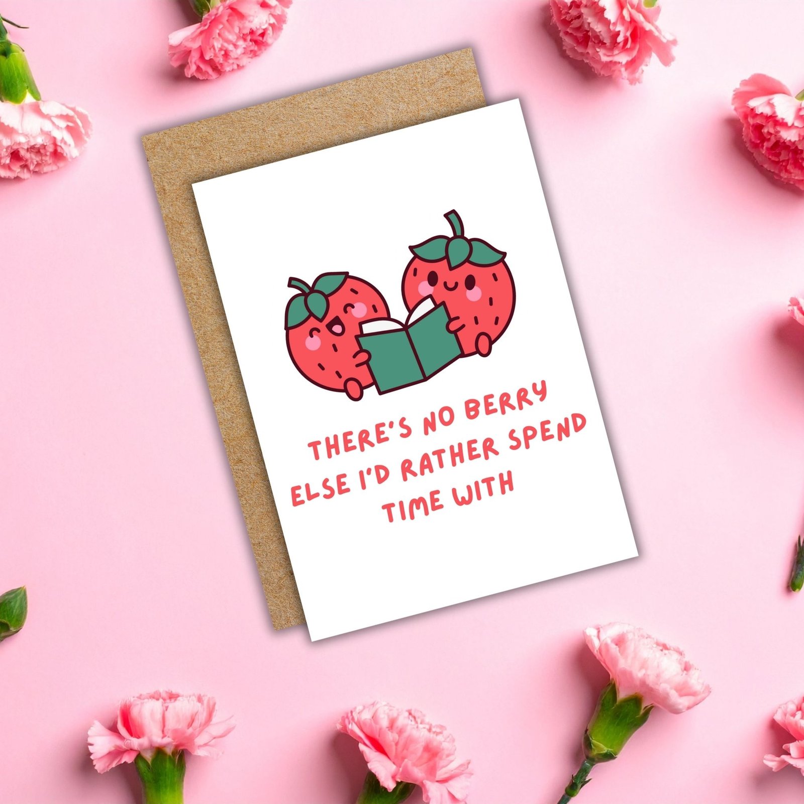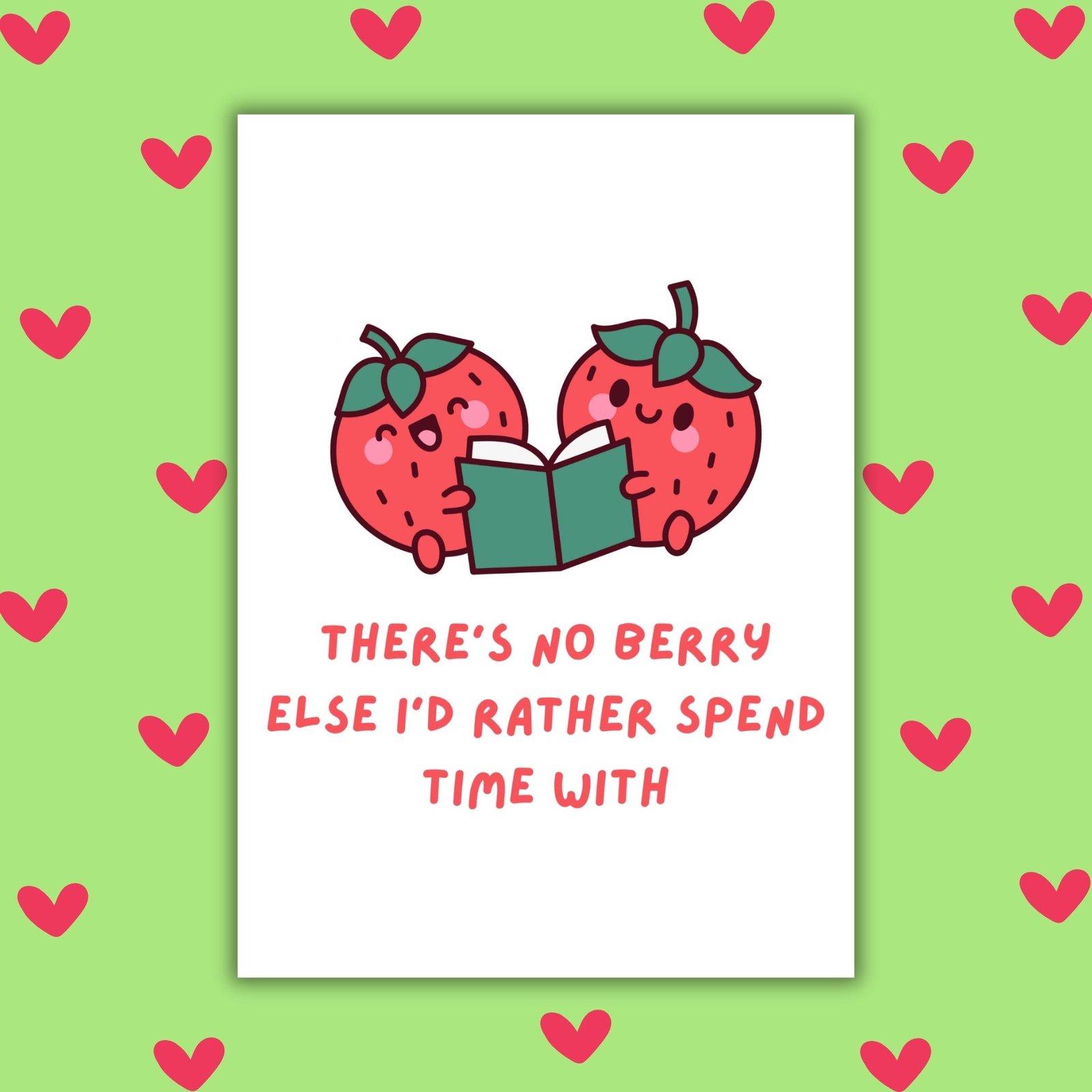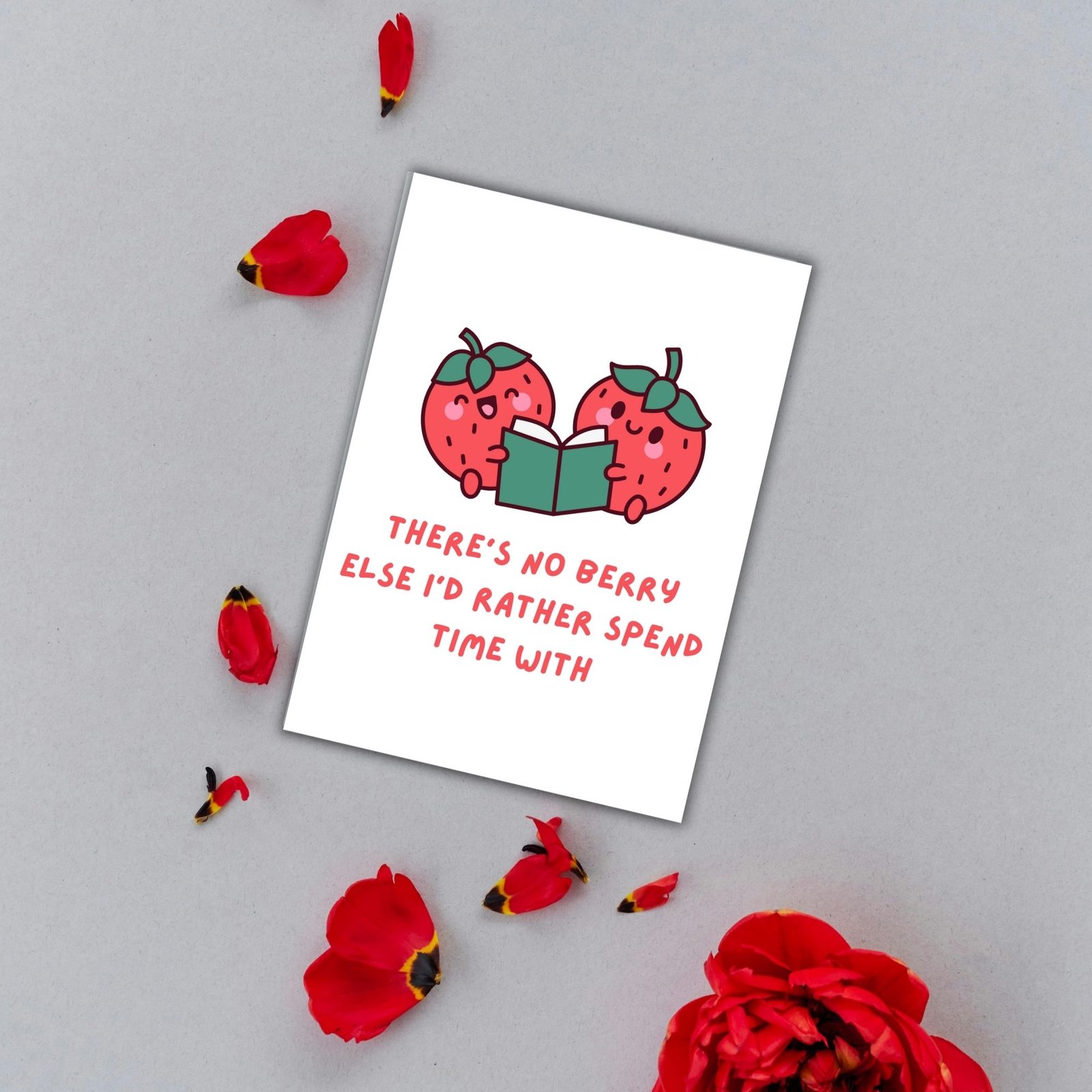Tell your favourite person how much they mean to you with this there’s no berry I’d rather spend time with Valentine’s card — featuring two cute berries enjoying a quiet moment together.