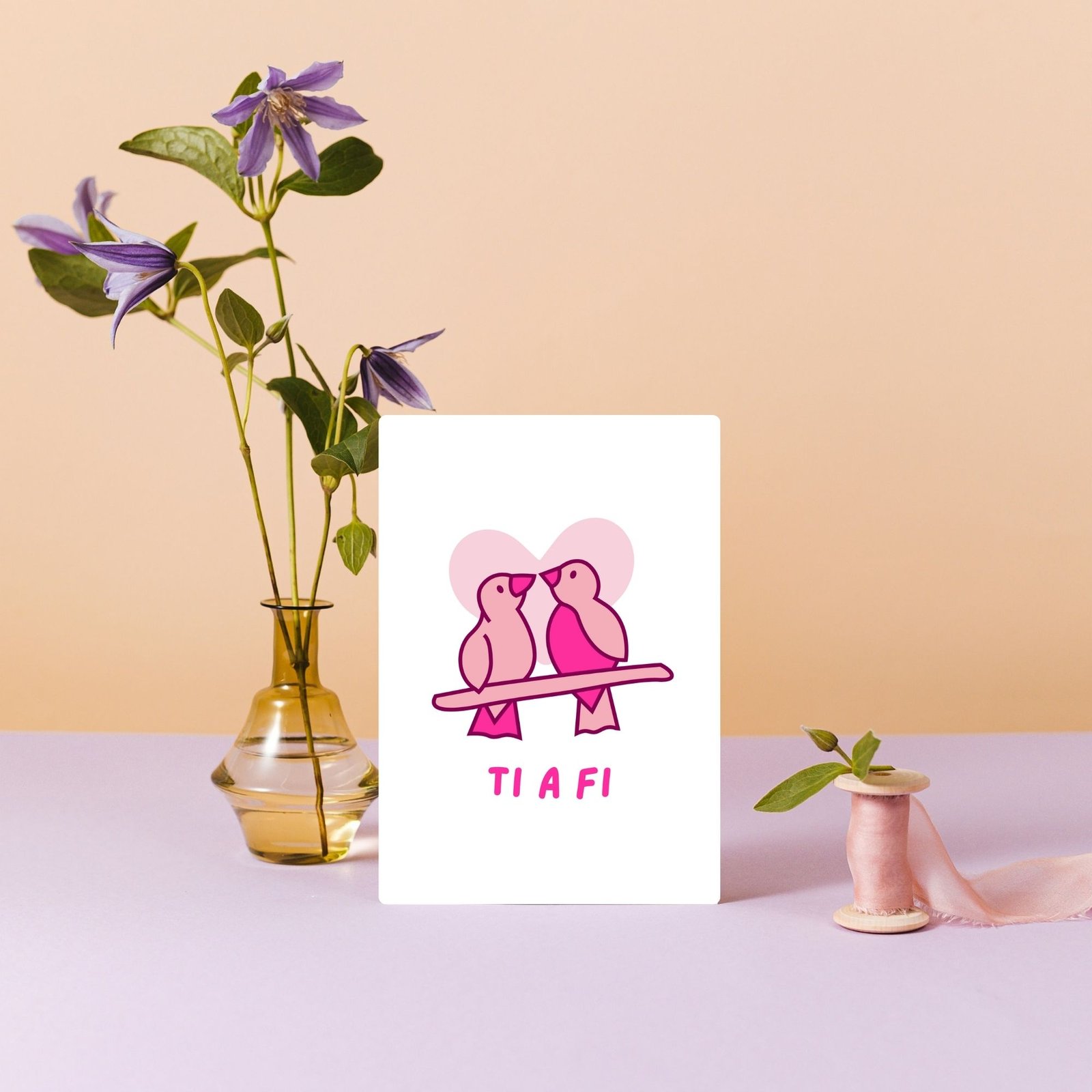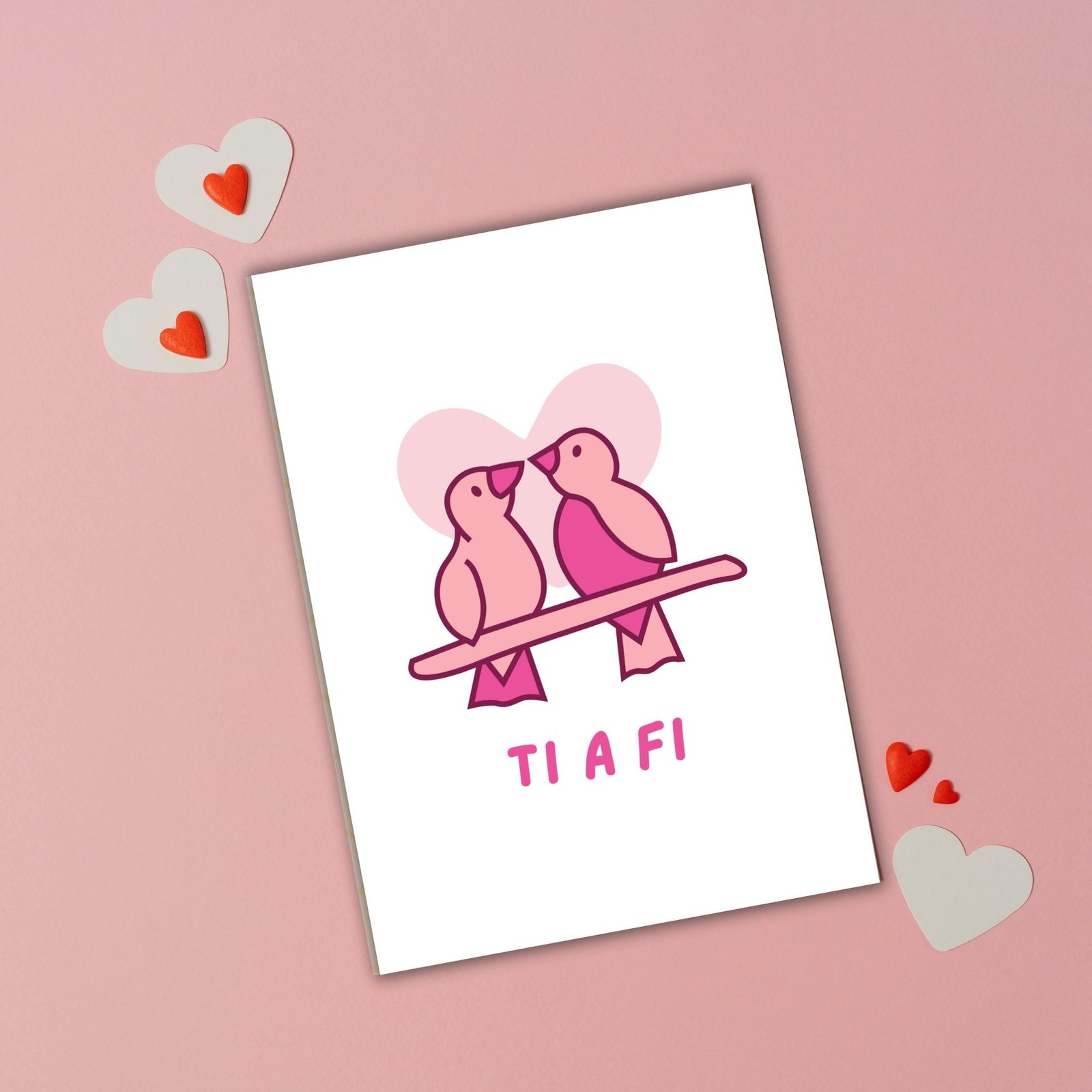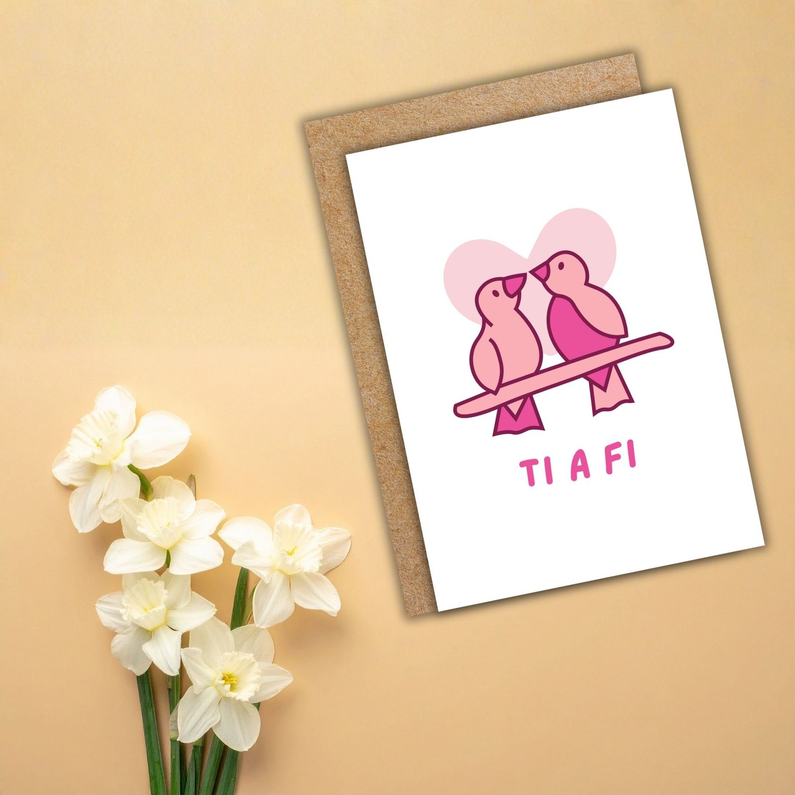 This “Ti a Fi” card — meaning You and Me in Welsh — features two sweet lovebirds, symbolising togetherness and devotion.