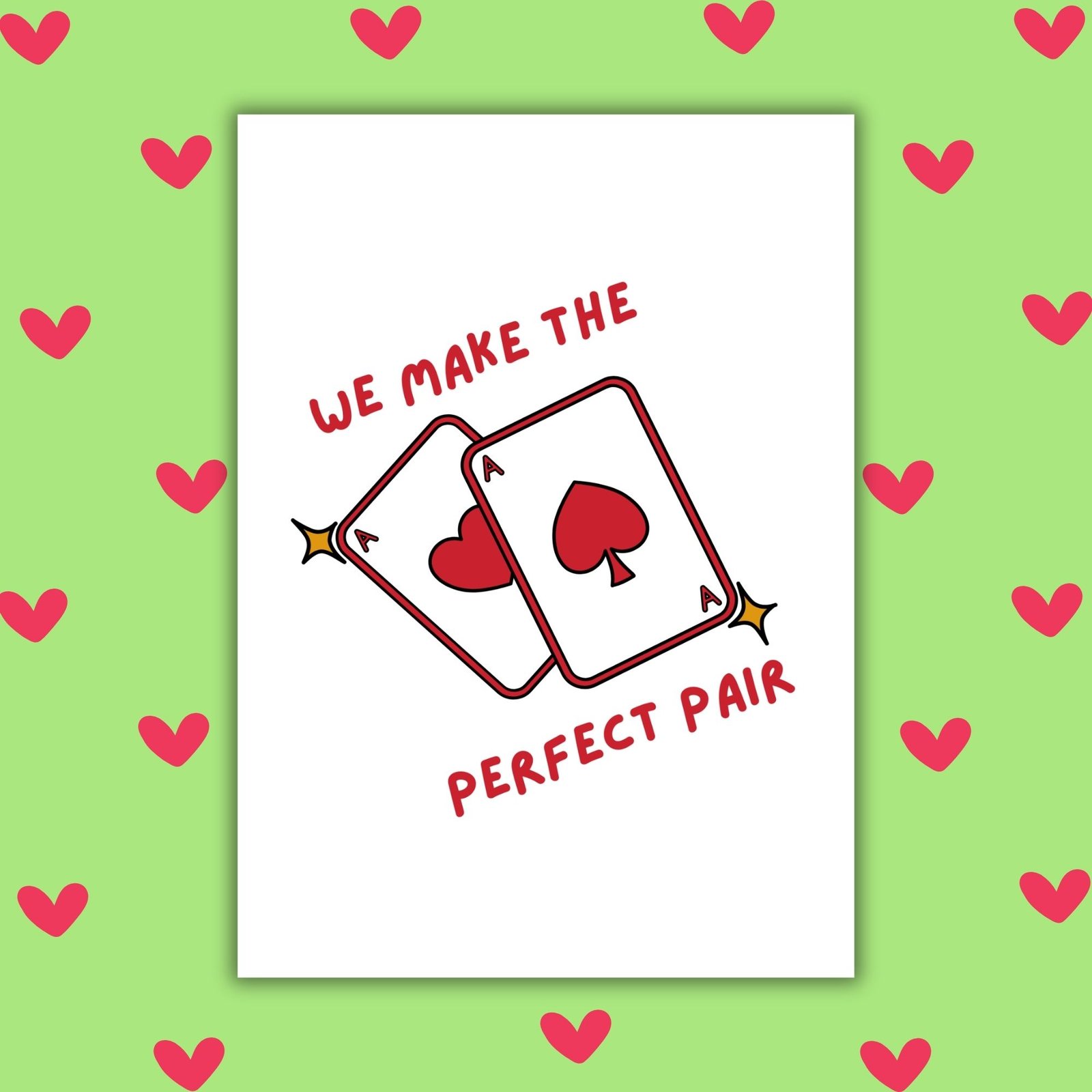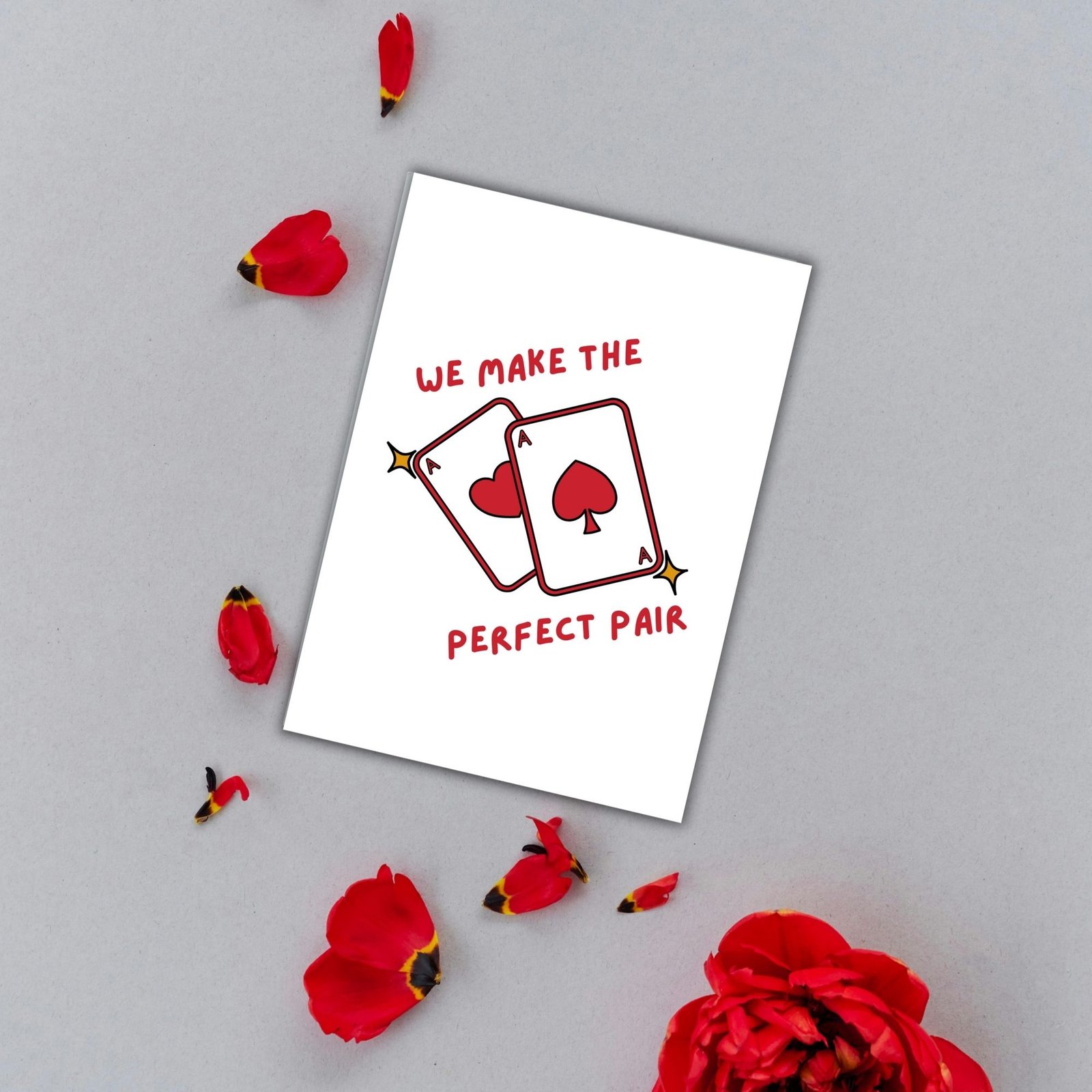 This We Make the Perfect Pair Valentine’s card features two ace playing cards — a clean, modern design celebrating equality, balance, and choosing each other. No hierarchy, no labels, just a strong, confident pairing that speaks for itself.