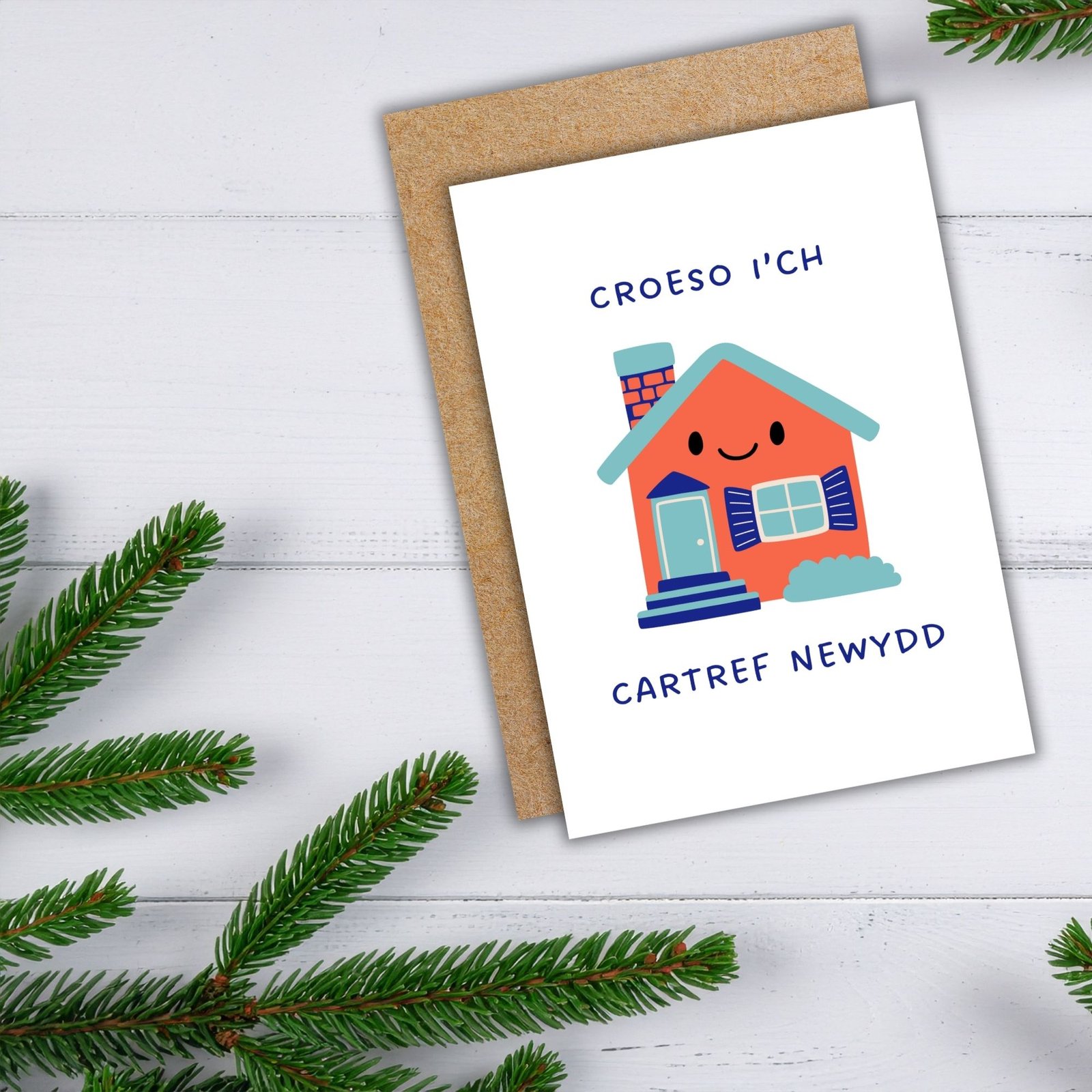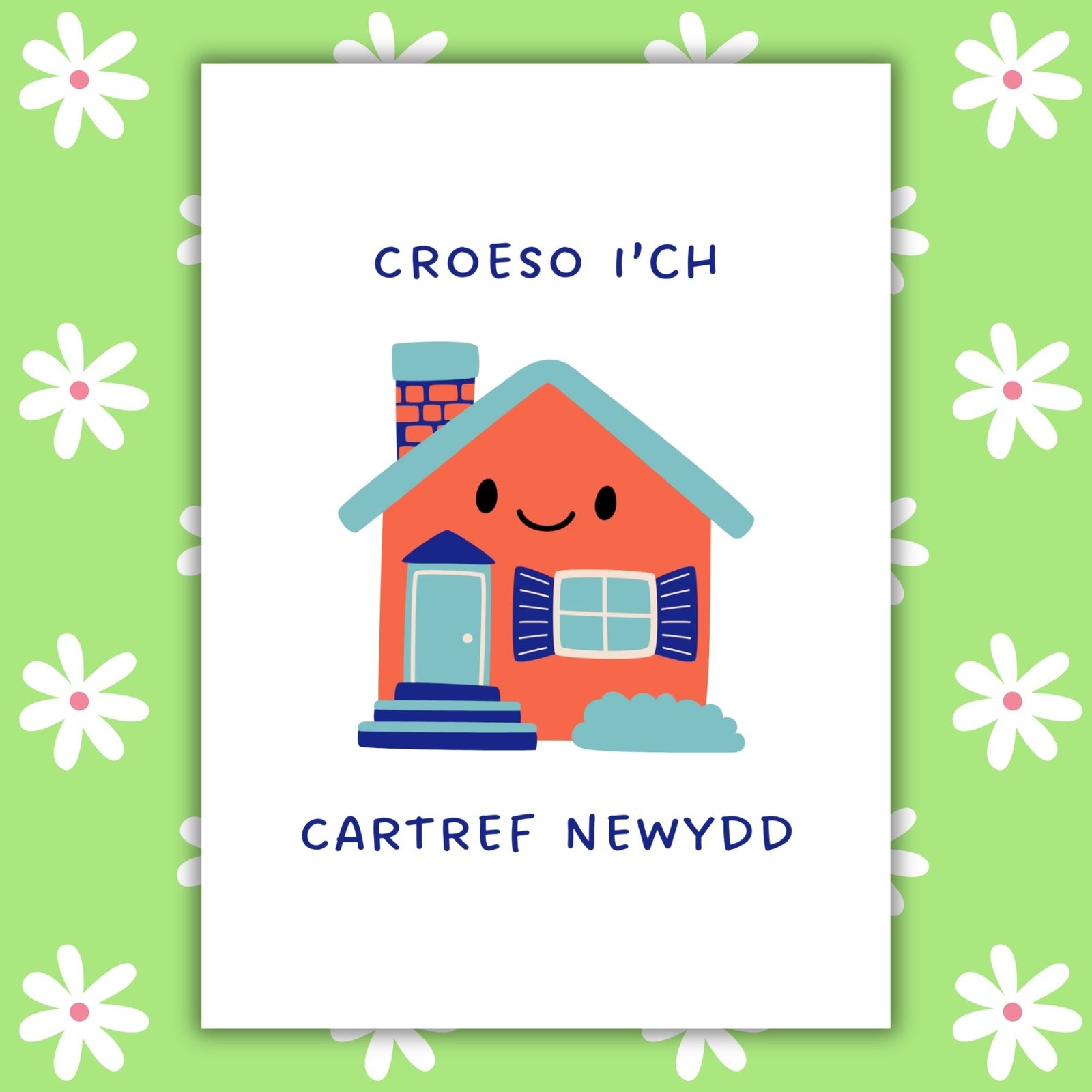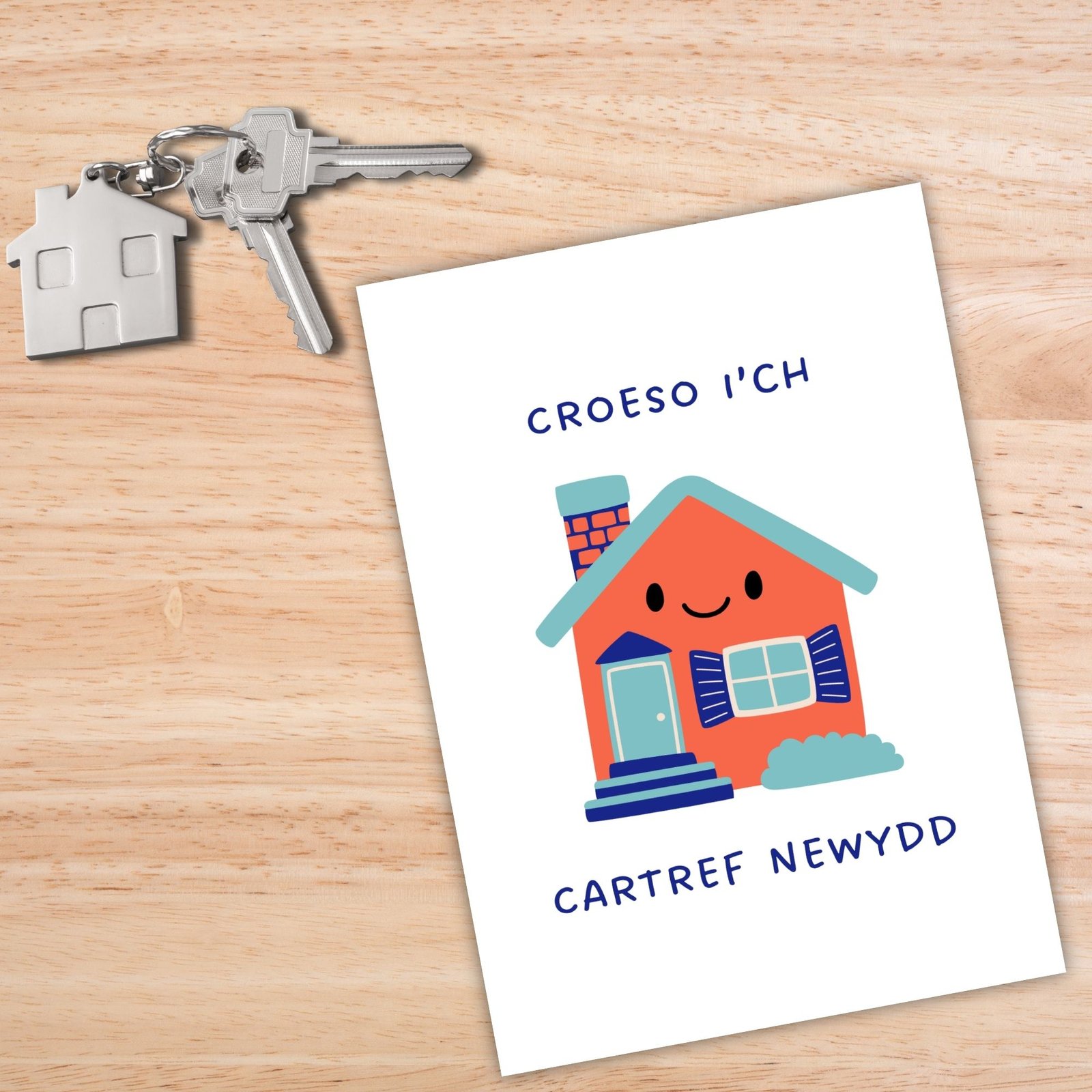 A welcoming Welsh-language card perfect for celebrating someone settling into their new home.