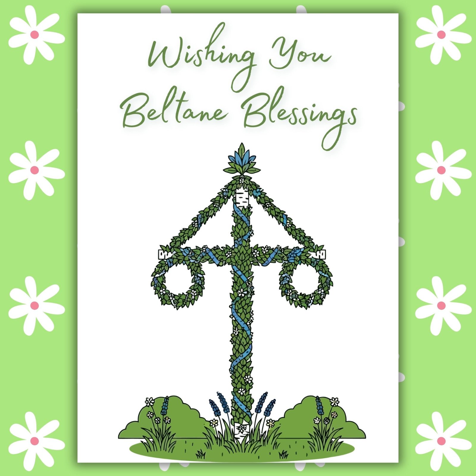 Wishing You Beltane Blessings Card – Maypole Illustration