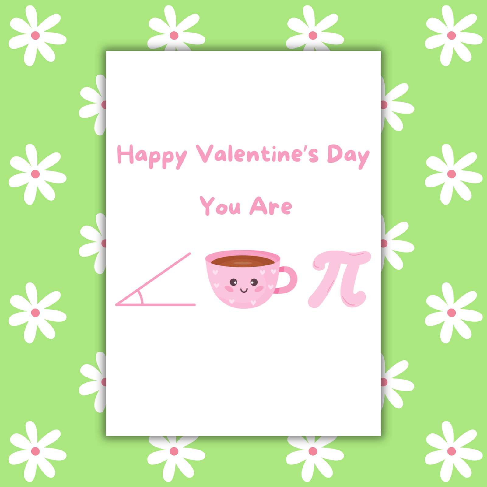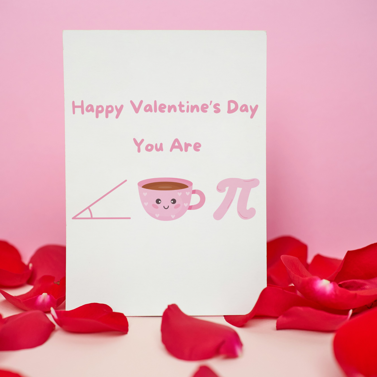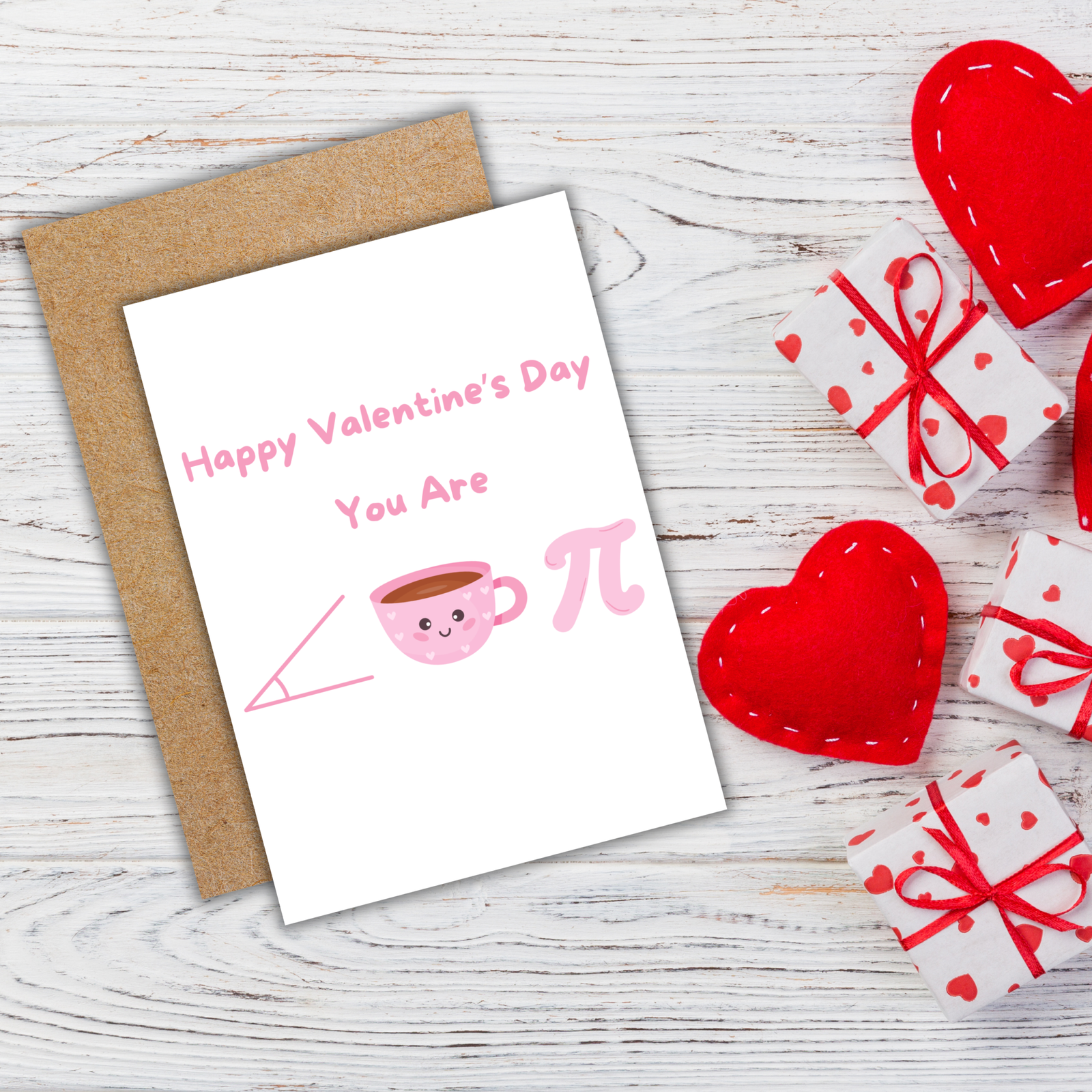 Show your love with a pun-tastic card! This adorable card features a clever play on words with images of an acute angle, a cup of tea, and the Pi symbol, making it the perfect way to tell your special someone they’re a cutie pie.